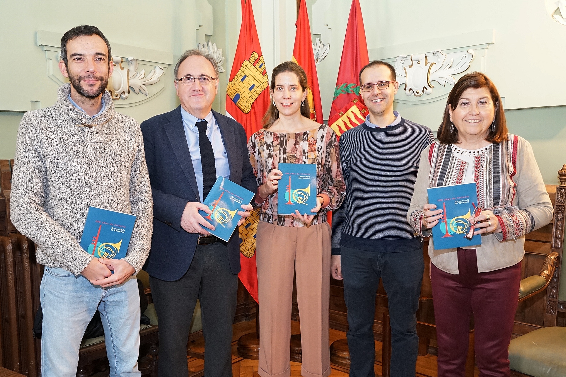 La concejala de Educación, María Victoria Soto, ha presentado, esta mañana en el Salón de Plenos, la edición conmemorativa del centenario del Conservatorio de Valladolid, acompañada de Laura de la Hoz, directora del Conservatorio de Valladolid, los coordinadores de la edición, Ignacio Nieto Miguel y Raúl Álvarez Martín y Juan Carlos Sanz Bachiller, jefe del área de Inspección de la Dirección Provincial de Educación.