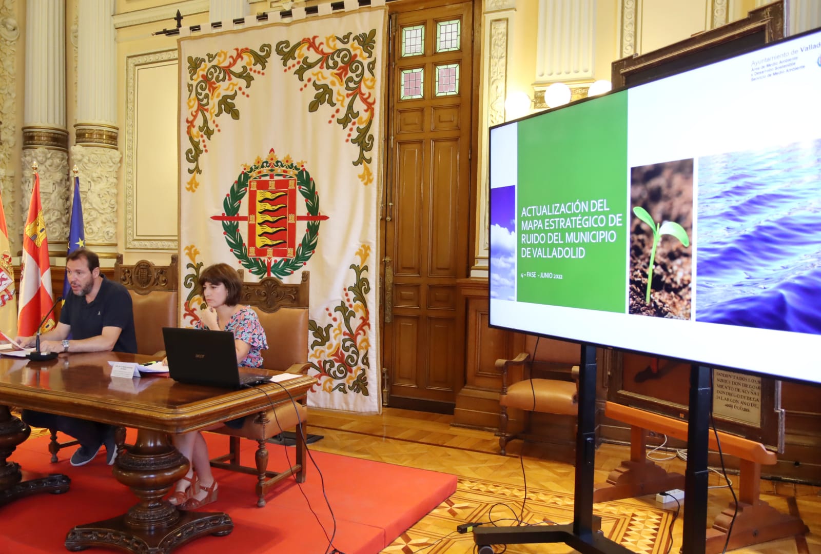 El alcalde, Óscar Puente, y la concejala de Medio Ambiente y Desarrollo Sostenible, María Sánchez, han presentado la actualización del Mapa Estratégico del Ruido de Valladolid que se realiza para dar cumplimiento a la directiva europea sobre la evaluación y gestión de ruido ambiental y a Lay 27/2003 del ruido y que alcanza la Fase 4 se ha aprobado en Junta de Gobierno. En los próximos días una vez que se publique en el Boletín Oficial de la Provincia pasará a estar en Información Pública por espacio de un mes; trascurrido ese plazo se remitirá a la Junta de Castilla y León, Administración encargada de su aprobación definitiva y de su revisión al Ministerio de Movilidad, Trasportes y Agenda Urbana.