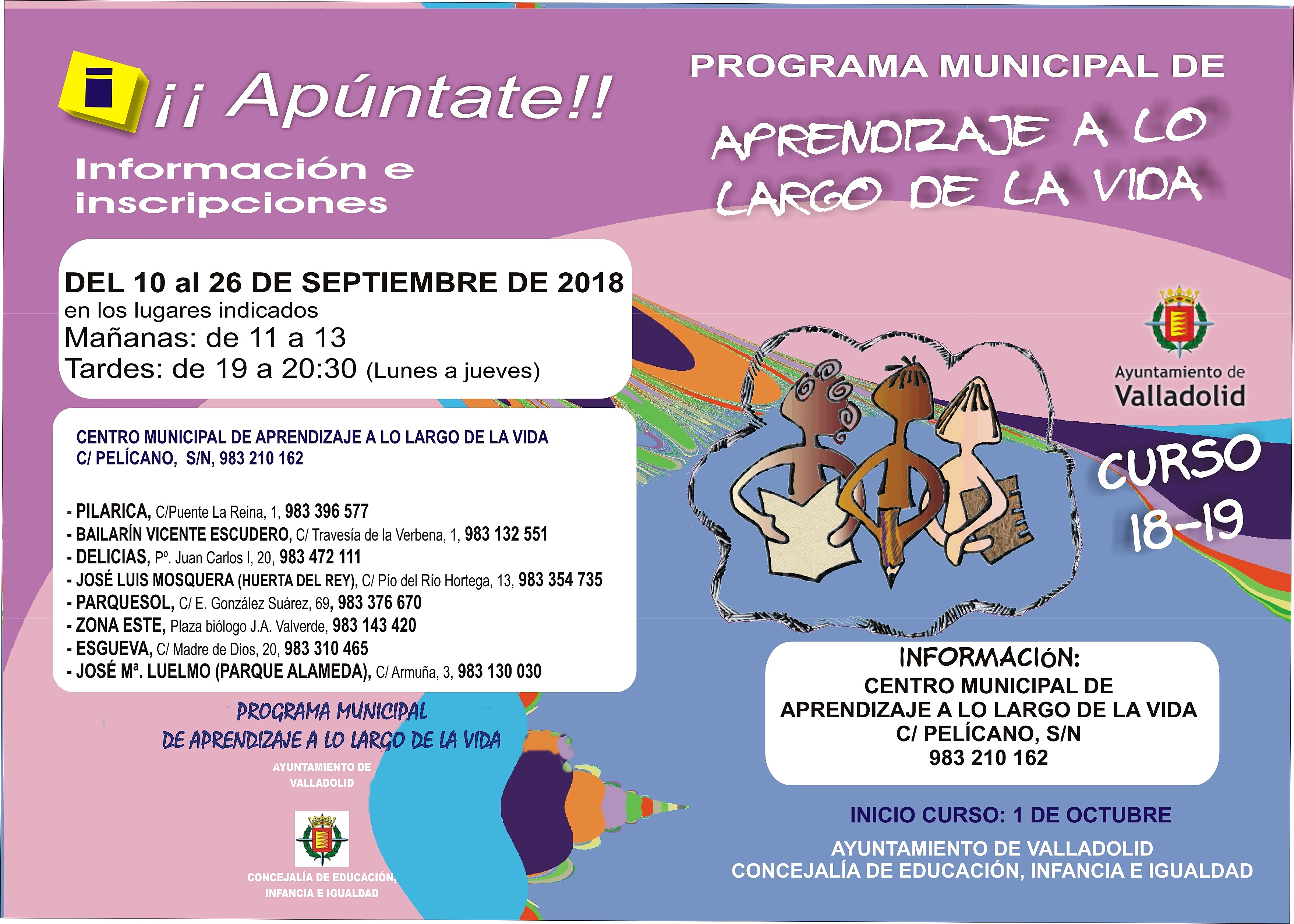 Además, en el Centro Municipal de Aprendizaje a lo Largo de la Vida, ubicado en la calle Pelícano, se realizan actividades de Informática básica.