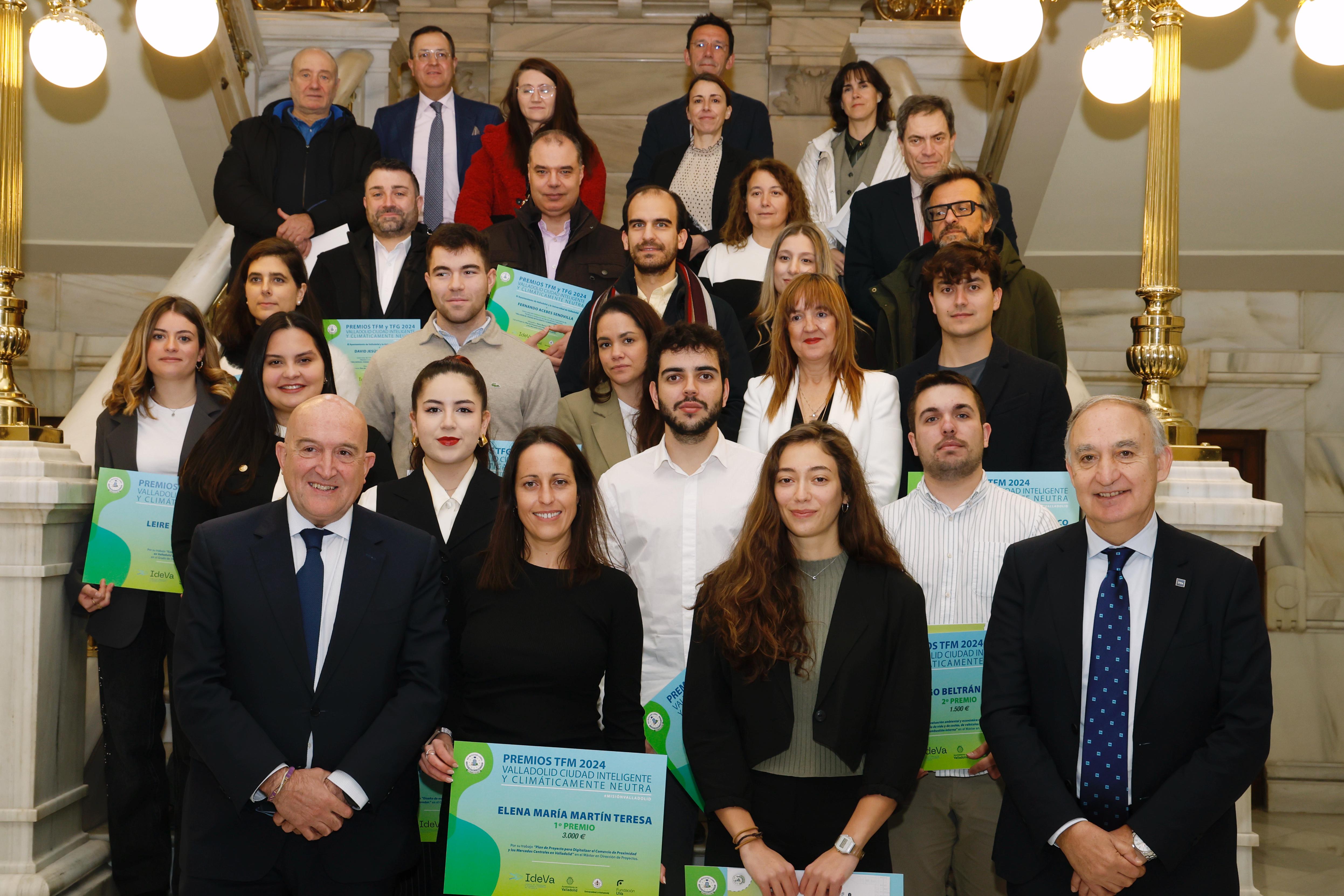 El alcalde de Valladolid, Jesús Julio Carnero, y el rector de la Universidad de Valladolid, Antonio Largo, han entregado este lunes los Premios 2024 'Valladolid, ciudad inteligente y climáticamente neutra', que reconocen por tercer año los 10 mejores Trabajos Fin de Grado (TFG) y Fin de Máster (TFM) de la Universidad de Valladolid, superados en los cursos 2022-2023 y 2023-2024, que en total ascienden a 12.000 euros.