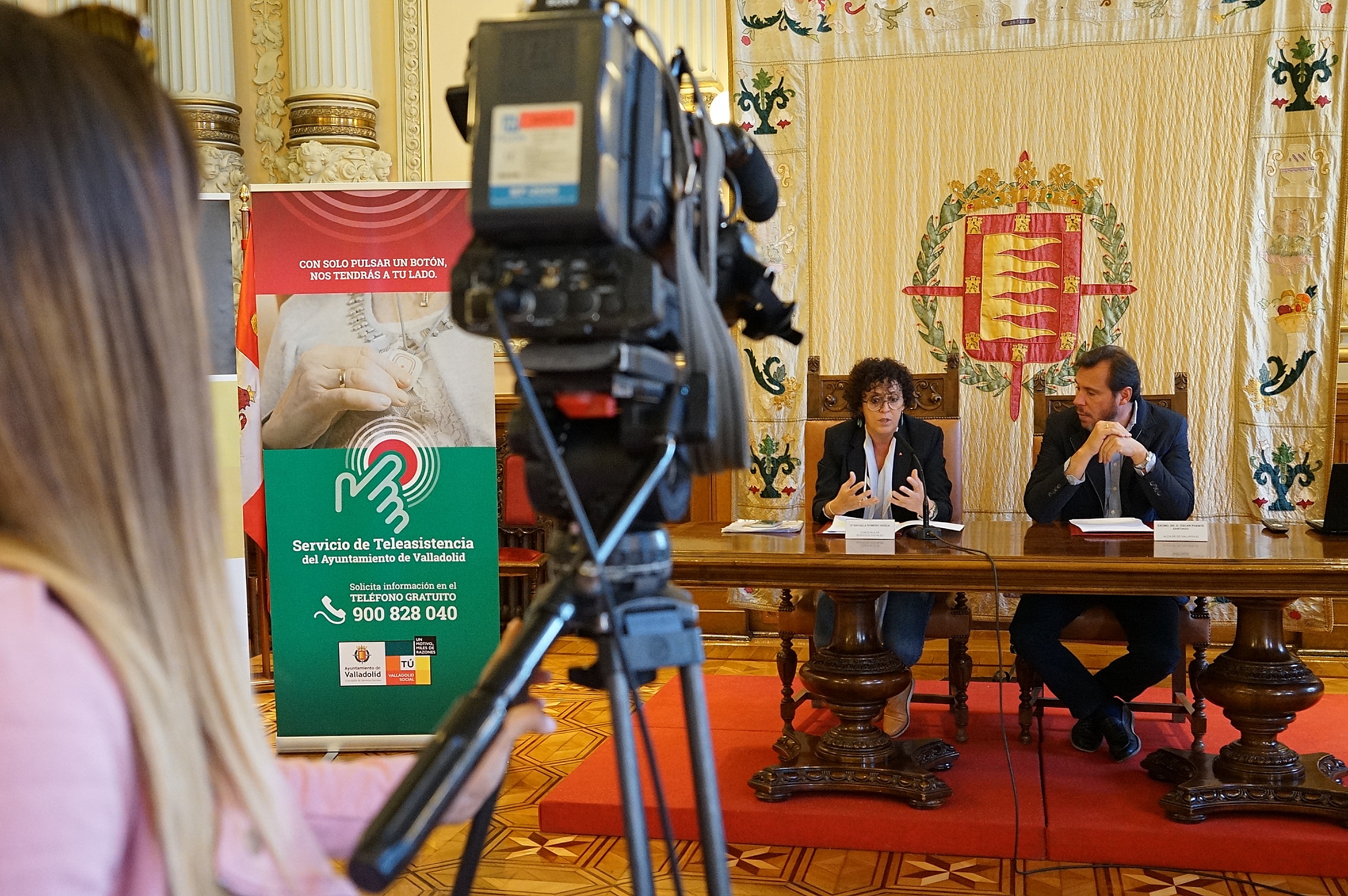 El alcalde de Valladolid, Óscar Puente, y la concejala de Servicios Sociales, Rafaela Romero, han presentado en rueda de prensa los objetivos que persigue este proyecto que pretende proporcionar a las personas mayores el Servicio de Teleasistencia básica durante tres meses de forma experimental y gratuita, además de facilitarles una información personalizada para favorecer el acercamiento al sistema de servicios sociales para las atenciones que precisen.