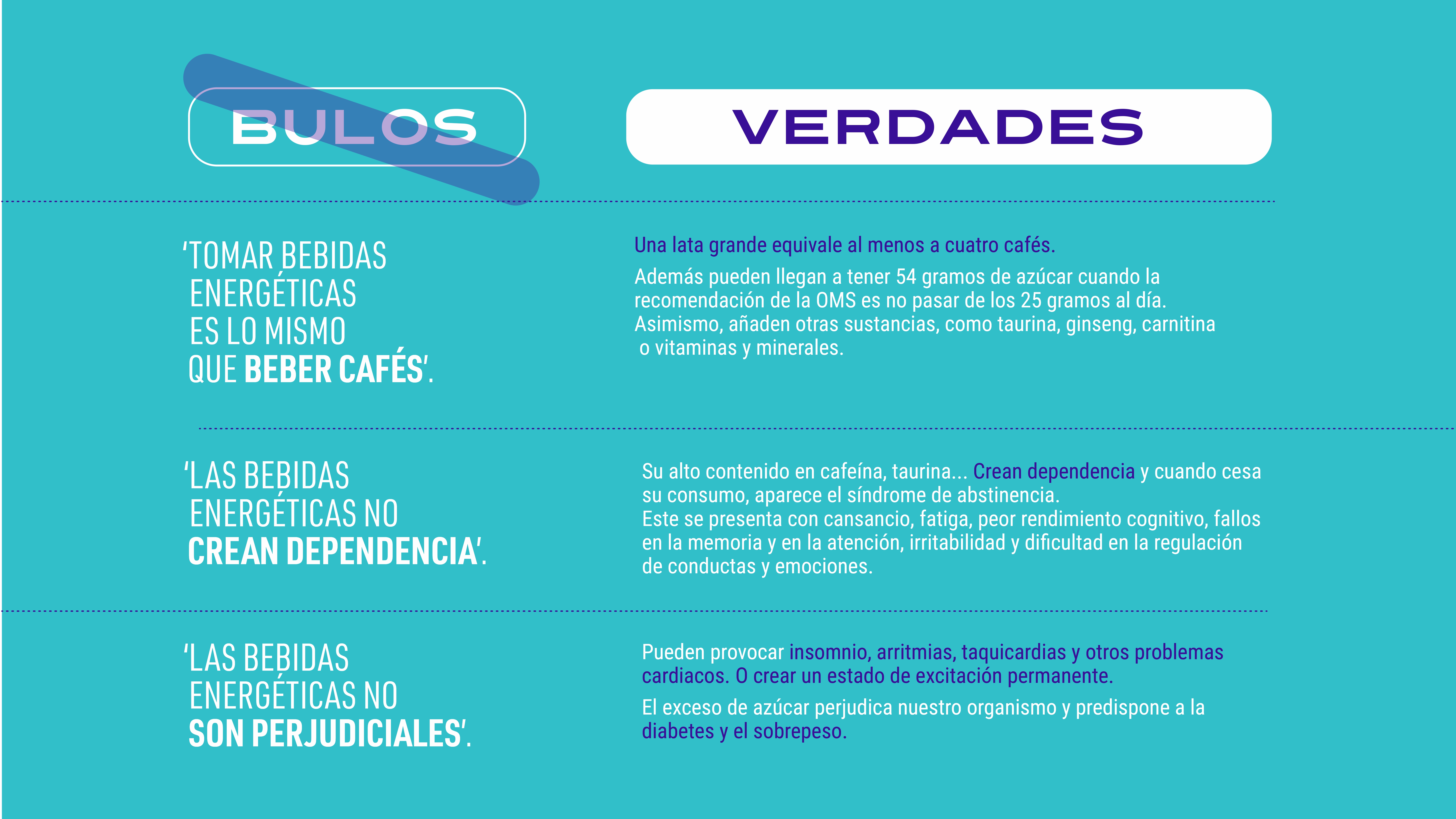 - Campaña de sensibilización sobre bebidas energéticas y vapeadores. Se han elaborado infografías que desmienten bulos y presentan información veraz, distribuyéndose en centros educativos de ESO, Bachillerato y Ciclos Formativos, así como en bibliotecas, CEAS, centros cívicos, polideportivos de la Fundación Municipal de Deportes y los Espacios Jóvenes de la ciudad.