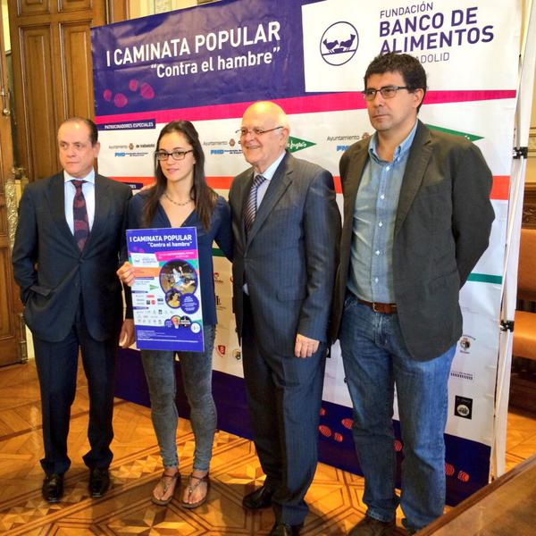 El Salón de Recepciones de la Casa Consistorial ha acogido esta mañana la presentación de la I Caminata Popular "Contra el hambre", que se celebrará en nuestra ciudad el próximo 11 de octubre. Un acto que ha contado con la presencia del concejal de Participación Ciudadana, Juventud y Deportes, Alberto Bustos García, Jesús Mediavilla, presidente de la Fundación Banco de Alimentos, José Antonio Lobato, director de Relaciones Externas del Corte Inglés y la jugadora del Balonmano Aula Cultural, Amaia González de Garibay.