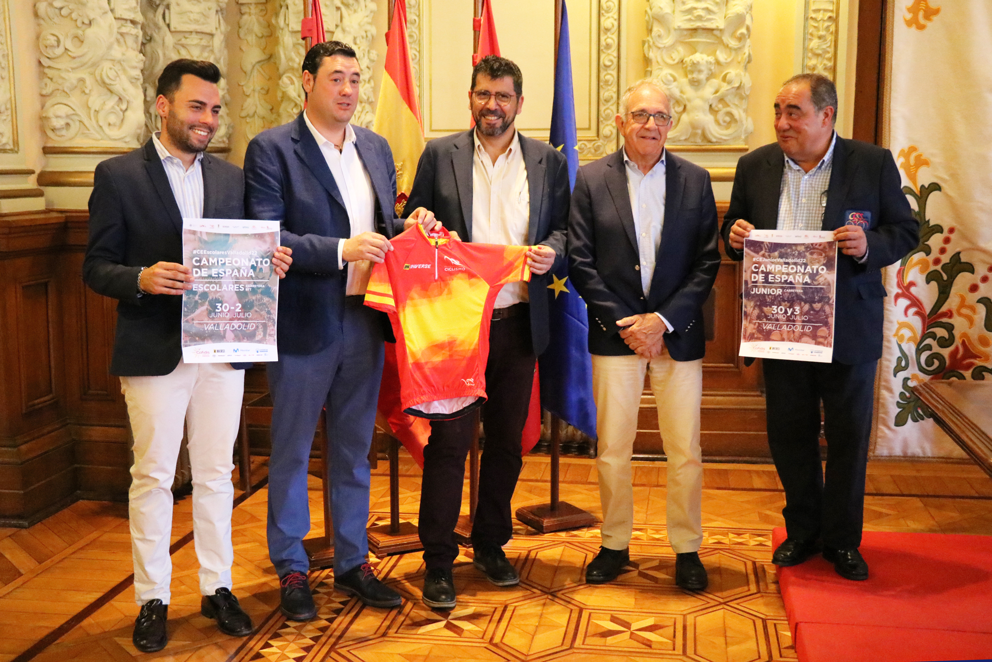 "Valladolid es una ciudad deportiva y este próximo fin de semana tenemos otra muestra con la participación de más de 650 ciclistas, ochenta técnicos, personal auxiliar, árbitros, voluntarios y cientos de familiares que vendrán a la ciudad a acompañar a los deportistas". El concejal de Participación Ciudadana y Deportes, Alberto Bustos, ha presentado los Campeonatos de España Escolares y Junior que discurrirán por las carreteras de la capital y la provincia del 30 de junio al 3 de julio. La presentación se ha realizado en el Ayuntamiento de Valladolid junto al diputado de Deportes de la Diputación de Valladolid, Francisco Javier González; el alcalde de Zaratán, Roberto Migallón; el presidente de la Federación Española de Ciclismo, José Luis López Cerrón, y el presidente de la Federación de Ciclismo de Castilla y León, Mariano Palacios.