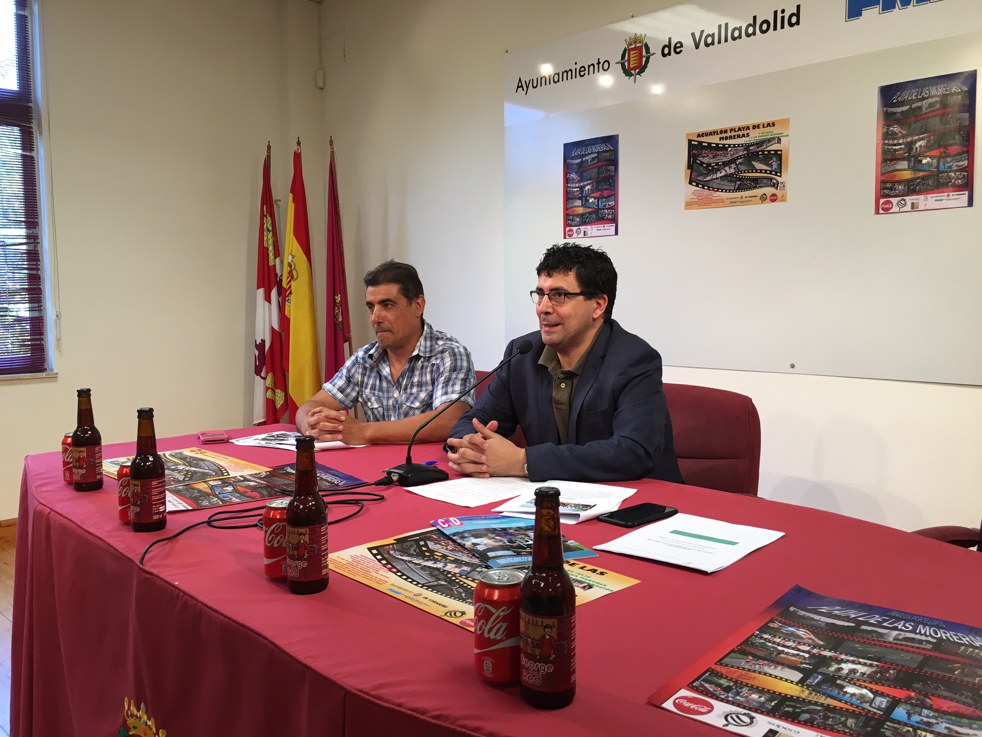 El concejal de Participación Ciudadana, Juventud y Deportes, Alberto Bustos, y el presidente del C.D. Triatlón Bomberos Valladolid, Jesús del Caño, han presentado esta mañana la tercera edición del ‘Triatlón por equipos y acuatlón’ que organiza este club y que se disputará en la playa de Las Moreras el próximo fin de semana.