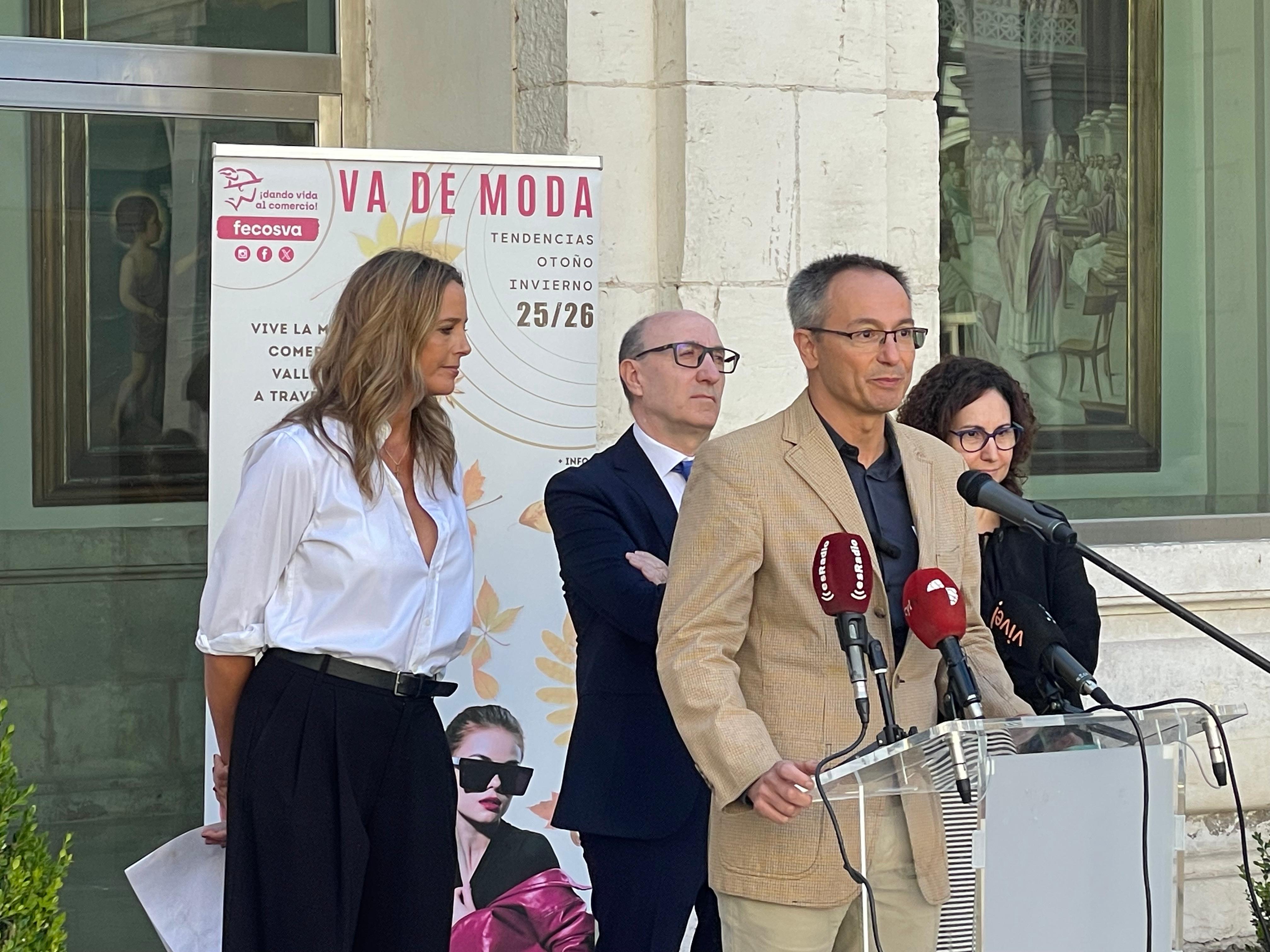 El concejal de Comercio, Mercados y Consumo del Ayuntamiento de Valladolid, Víctor Martín, el Presidente de la Federación de Comercio y Servicios de Valladolid (Fecosva), Jesús Herreras, la Coordinadora del área de Comercio de la Cámara Oficial de Comercio, Industria y Servicios de Valladolid, Arancha Ferrero y un representante de la dirección general de Comercio de la Junta de Castilla y León y la directora de pasarelas Estefanía Luyk, han presentado en la mañana de hoy en el Museo Oriental la campaña VA DE MODA – Tendencias de Otoño – Invierno.