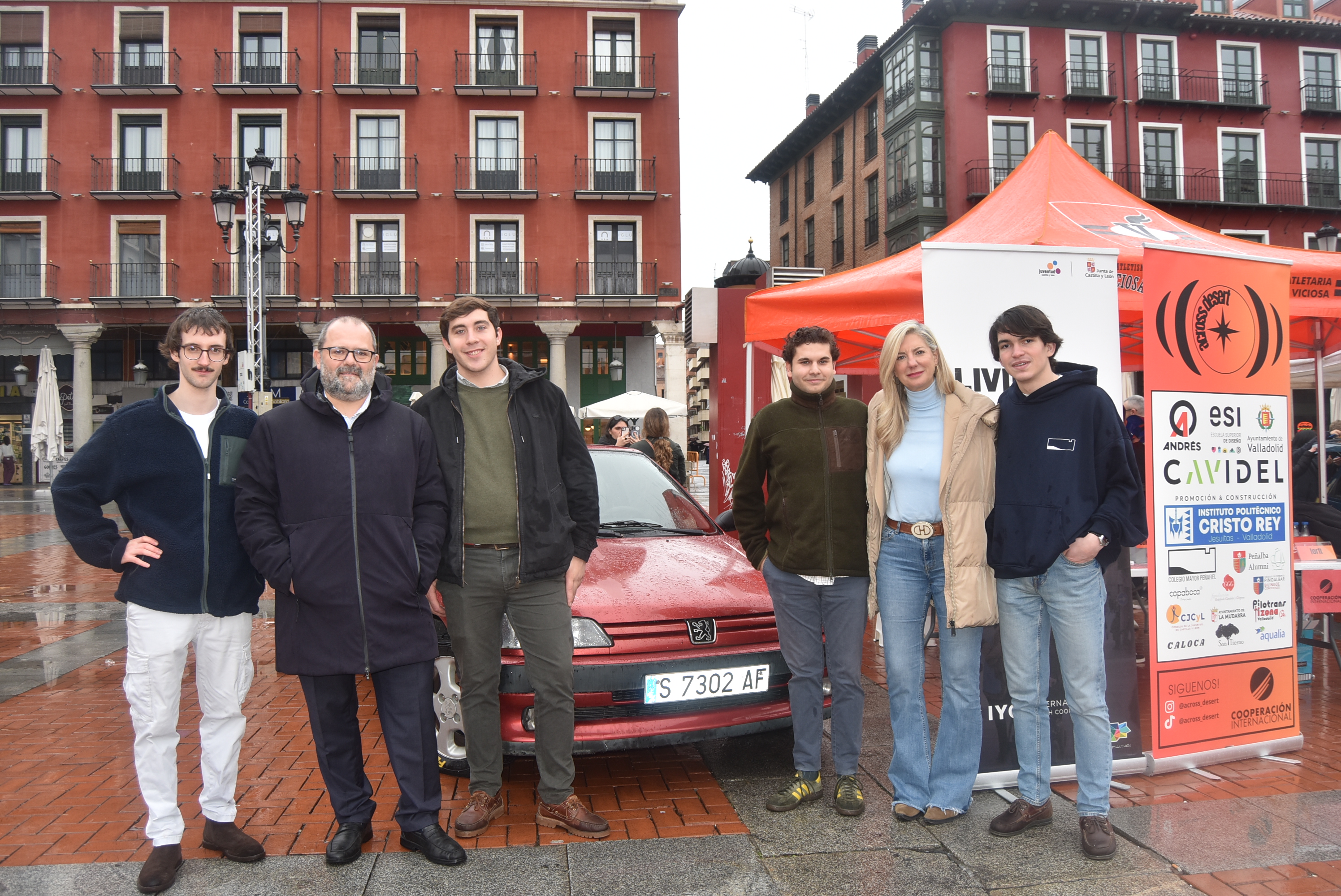 La concejala de Educación y Cultura, Irene Carvajal, ha participado en la presentación en la Plaza Mayor de Valladolid de la iniciativa solidaria ‘Across Desert’, promovida por cuatro jóvenes de Valladolid en colaboración con la ONG Cooperación Internacional, que se embarcarán en el ‘Uniraid 2025’.