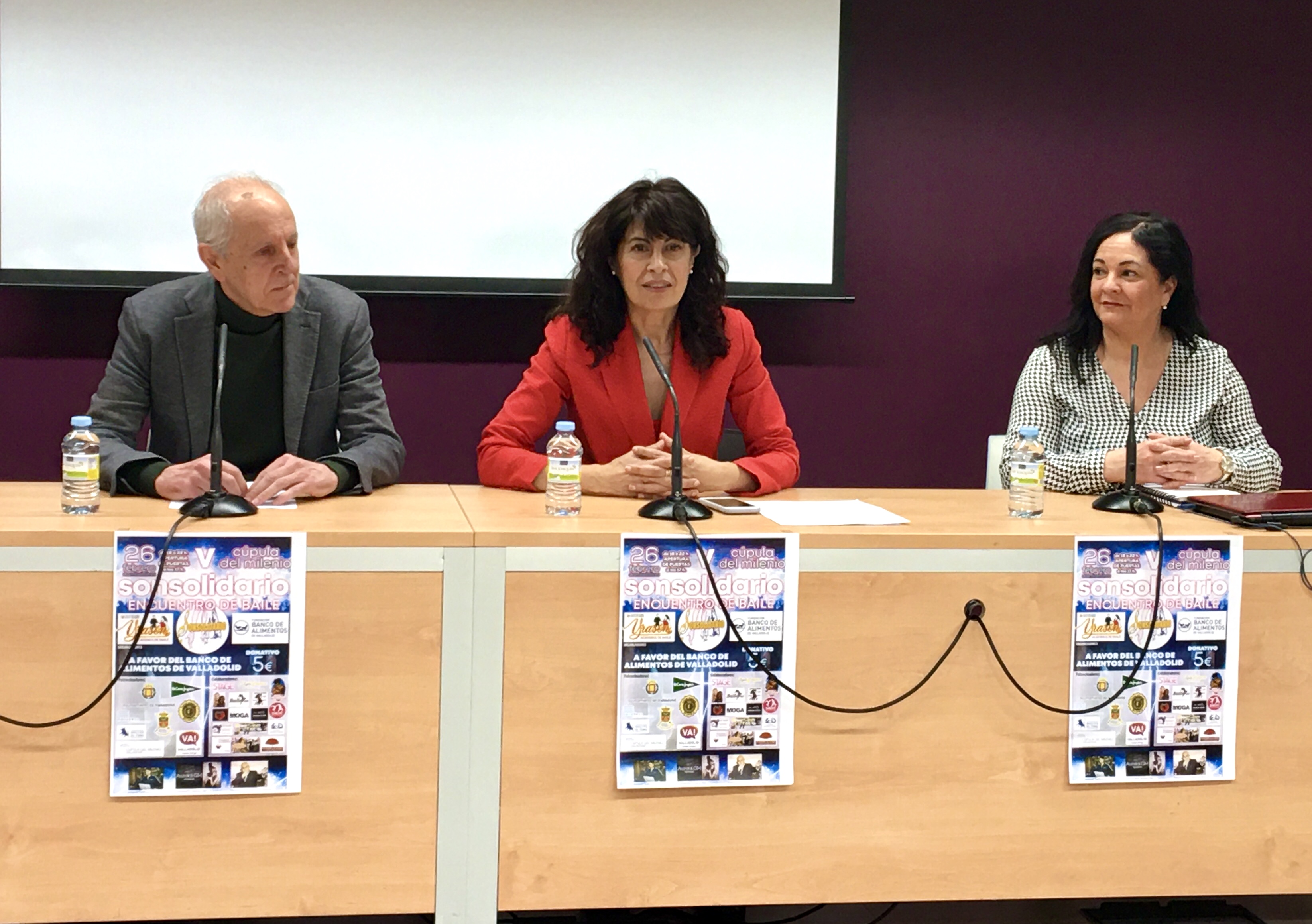 La concejala de Cultura y Turismo, Ana Redondo, ha presentado el V Encuentro de Baile Sonsolidario acompañada por el vicepresidente del Banco de Alimentos de Valladolid, Tomás Pérez, y la directora de la academia Yrasón, Irasema López.