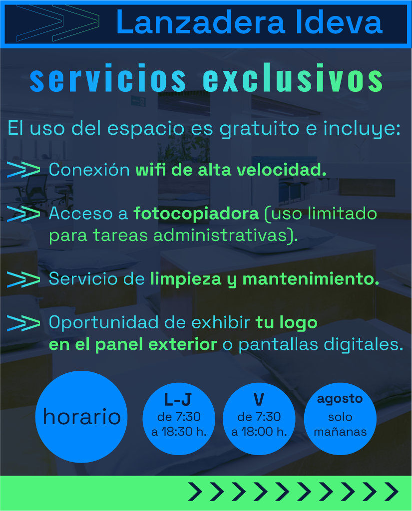 El lunes 10 de febrero se abre el plazo para solicitar este espacio de coworking gratuito que ofrece el Ayuntamiento de Valladolid en su Agencia de Innovación y Desarrollo Económico. Cuenta con 16 puestos para autónomos, emprendedores, pymes y micro pymes de la ciudad de Valladolid y de los municipios de la Mancomunidad de Interés General -MIG- de la ciudad. Además, ofrece acceso a salas comunes, en las dos plantas de IdeVa, con un equipamiento puntero, que ayudará a los profesionales a establecerse y acelerará su despegue.