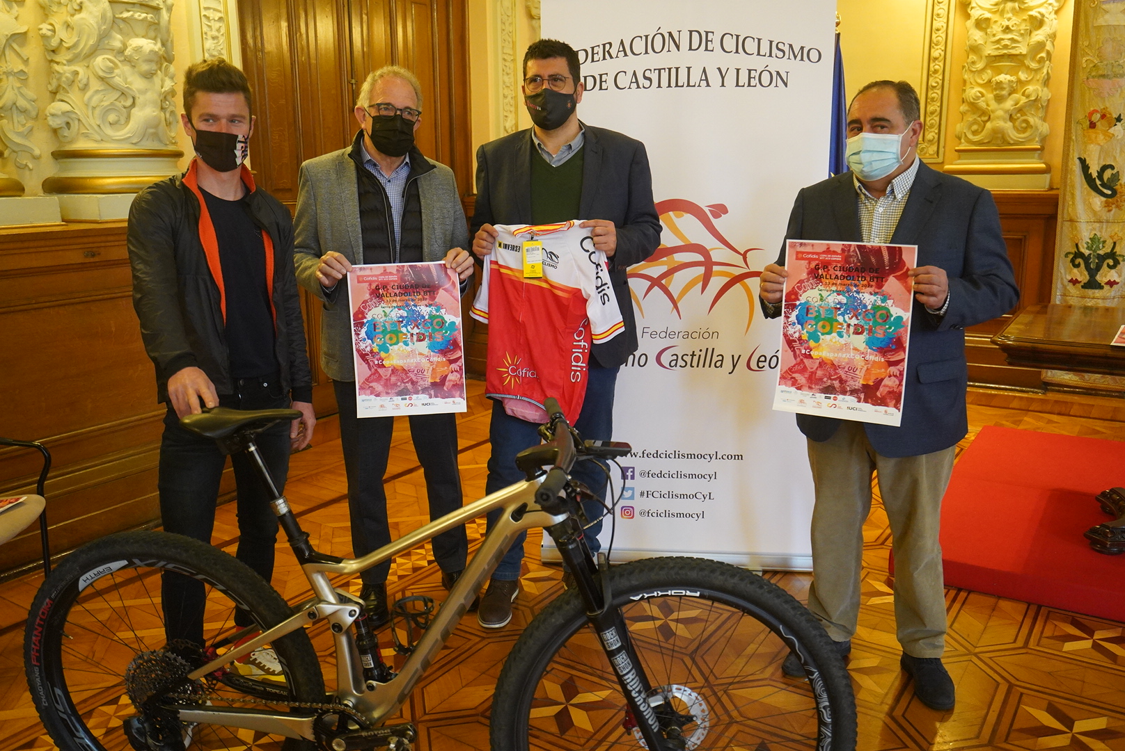 El concejal de Participación Ciudadana y Deportes, Alberto Bustos, ha presentado el Gran Premio Ciudad de Valladolid de BTT que se celebrará el próximo domingo, 13 de marzo en el circuito del parque de Las Contiendas acompañador por el presidente de la Federación Española de Ciclismo, José Luis López Cerrón, el presidente de la Federación de Ciclismo de Castilla y León, Mariano Palacios, y el ciclista Óscar Pujol.