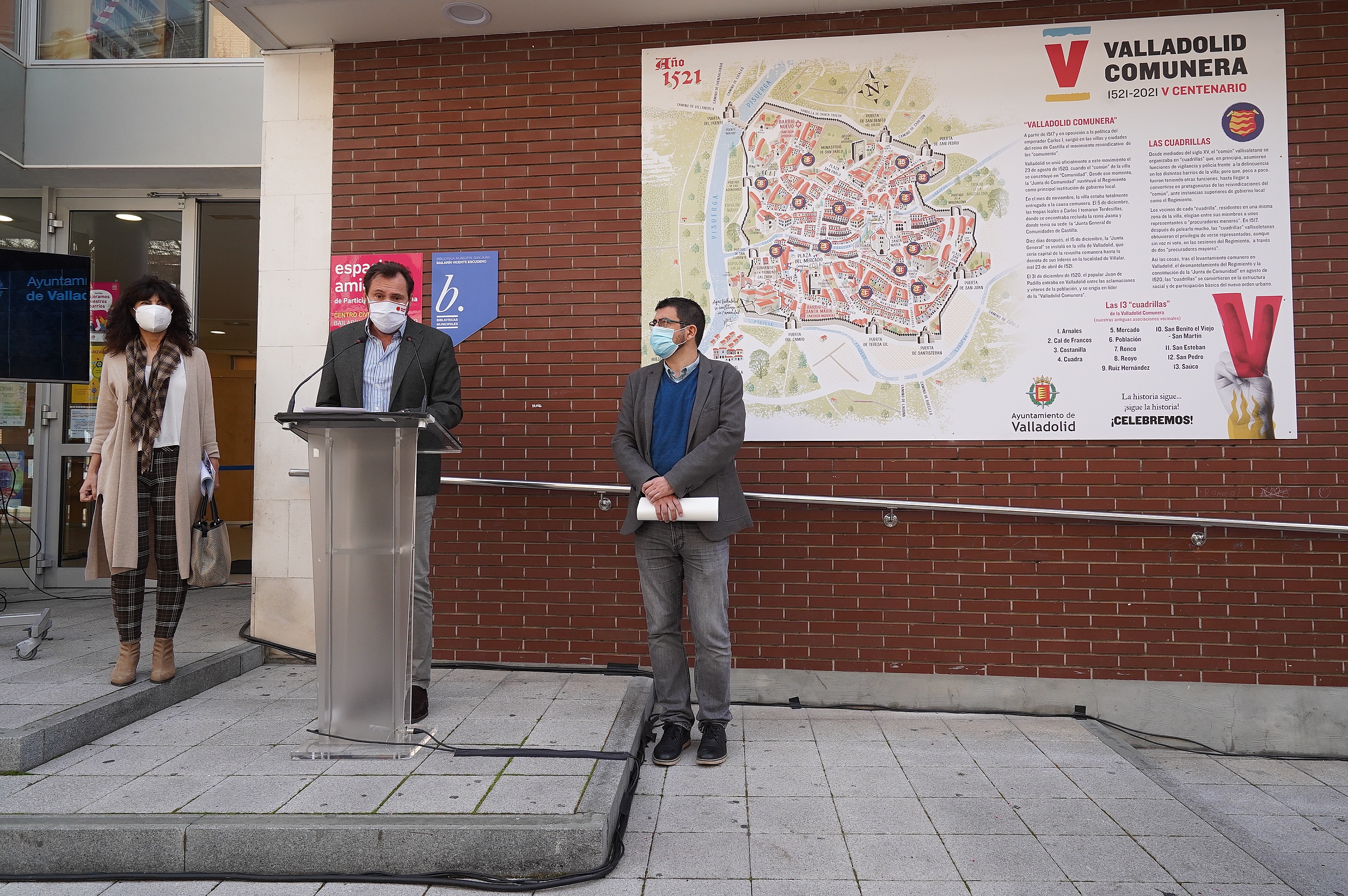El alcalde , Óscar Puente, acompañado por la concejala de Cultura y Turismo, Ana Redondo, y el concejal de Participación Ciudadana y Deportes, Alberto Bustos, ha presentado una nueva acción de las incluidas en el programa conmemorativo del quinto centenario de la Guerra de las Comunidades ("Valladolid Comunera").
