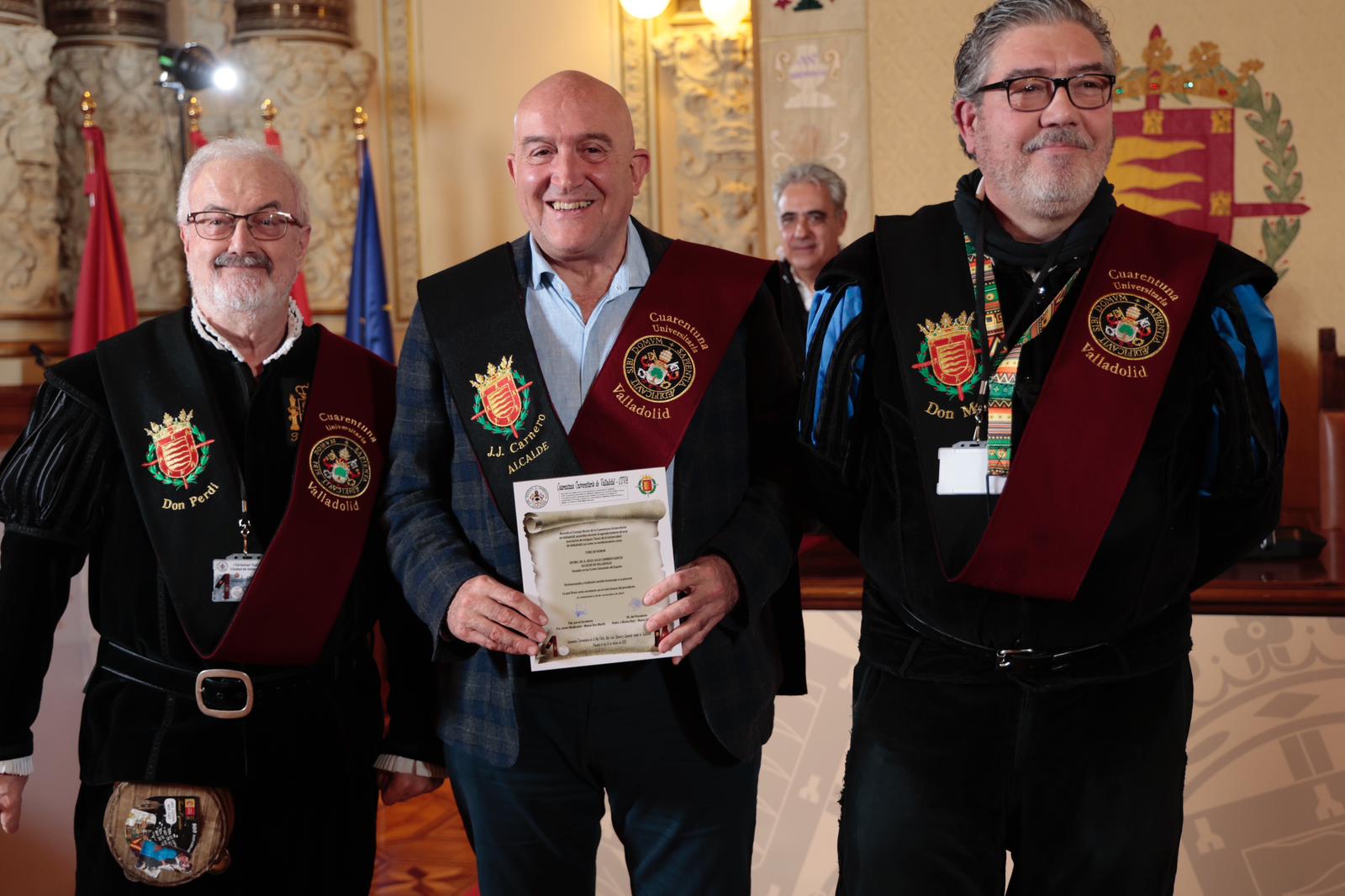 Durante la ceremonia, la CUVA ha hecho entrega al alcalde de Valladolid, Jesús Julio Carnero, del título de Tuno de Honor, como reconocimiento a su apoyo a la tradición tunantesca en un gesto simbólico con el que se la querido agradecer su implicación en la defensa del patrimonio intangible ligado a la vida universitaria y su respaldo a este movimiento, especialmente en un momento histórico marcado por su reciente declaración como Bien de Interés Cultural (BIC) de carácter inmaterial por la Junta de Castilla y León.