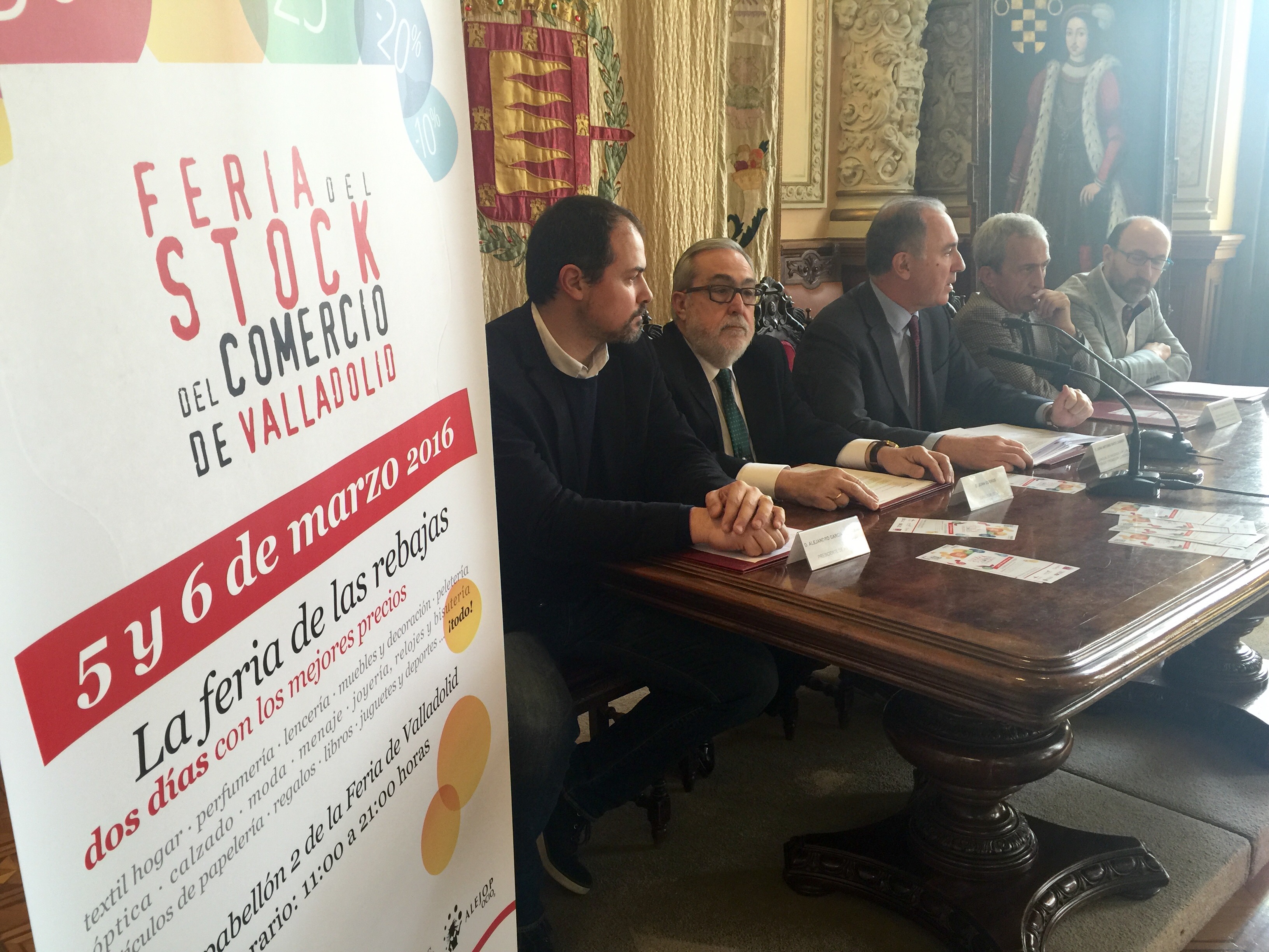 La Feria del Stock, que presentaron en el Ayuntamiento el concejal de Hacienda y Promoción Económica, Antonio Gato, y los responsables de FECOSVA, Jesús Herreras, AVADECO, Alejandro García Pellitero, Cámara de Comercio, Federico Sanz, y Feria de Valladolid, Juan Useros, cumple este año doce ediciones y es un proyecto impulsado por todas estas instituciones, que en las últimas ediciones se acercó a los 30.000 visitantes, cifra que espera alcanzarse en esta ocasión.
