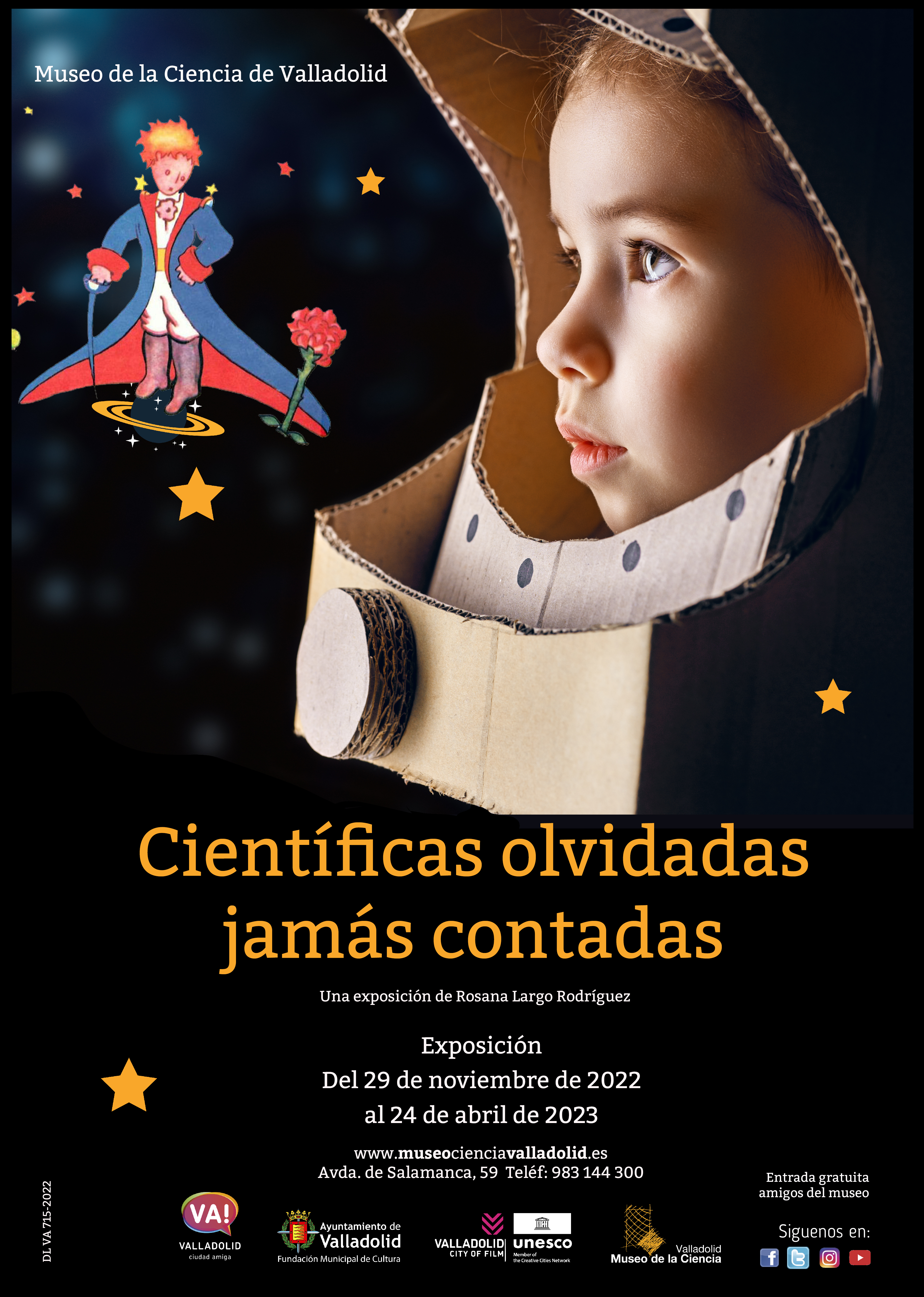 La exposición cuenta con tres apartados, uno de mujeres científicas, otro de mujeres inventoras y otro dedicado al cuento de ‘El principito’. Cada cuento está representado por una instalación artística, que recreará en su interior las secuencias más significativas del mismo, vinculándolo siempre con la científica de la que se trata.