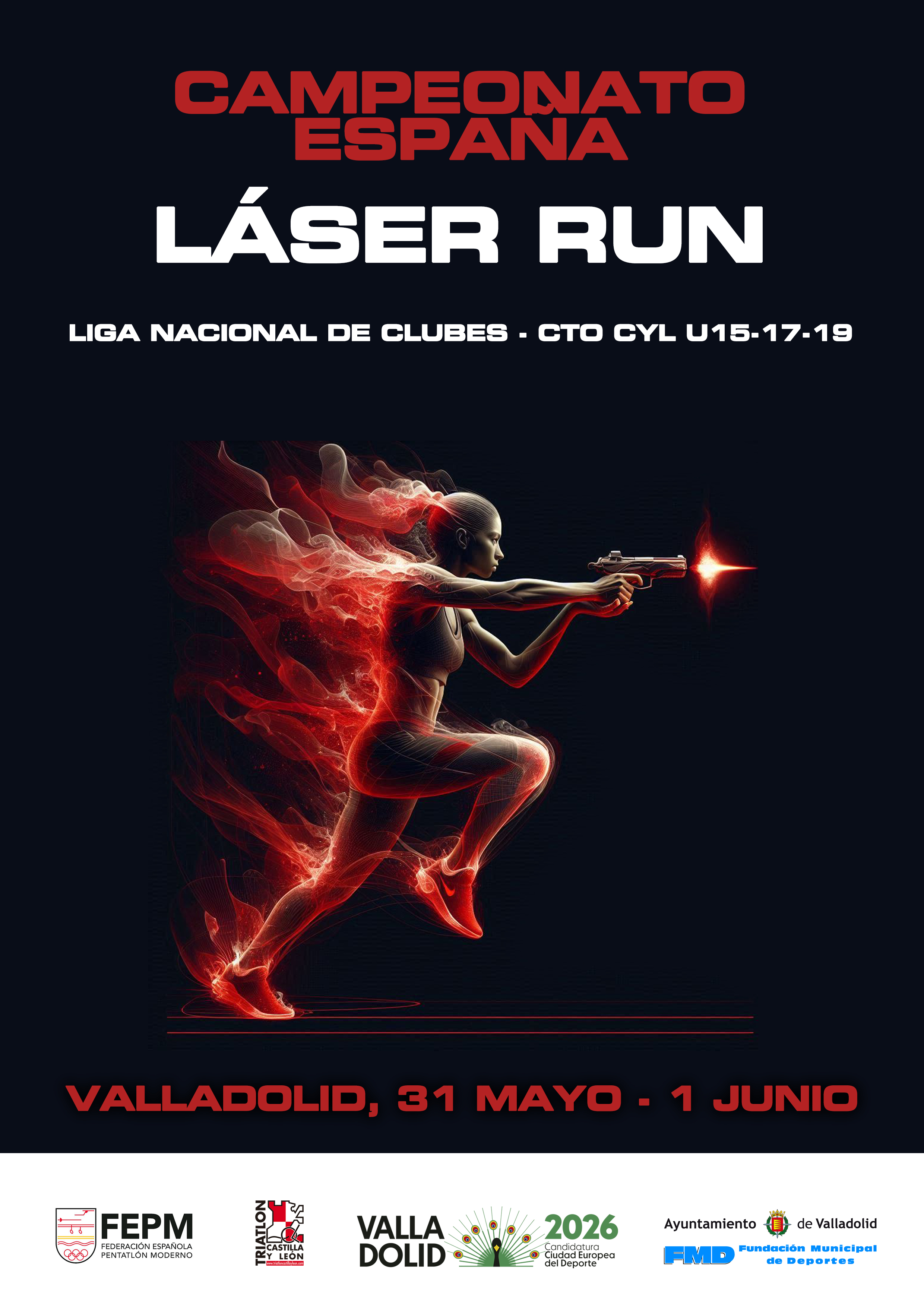 La competición arrancará el sábado a las 15:15 horas mientras que el domingo está previsto desde las 9:10 hasta las 14:30 horas, aproximadamente. El Campeonato de España de Láser-run y la segunda jornada de la Liga de clubes de pentatlón moderno están organizadas por la Federación de Triatlón de Castilla y León, en colaboración con la Federación Española y con la Fundación Municipal de Deportes del Ayuntamiento de Valladolid. Juegos Escolares.