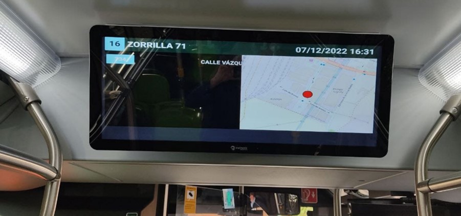 Pantallas multimedia en el interior de los autobuses y letreros exteriores