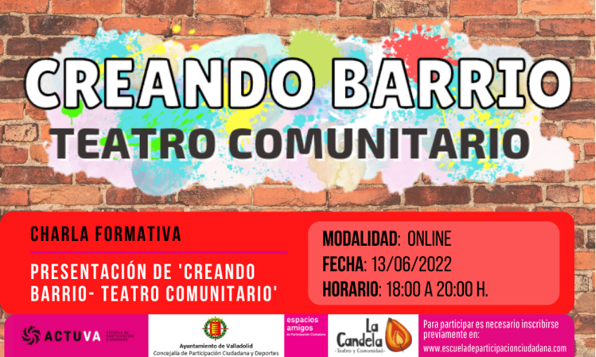 Abierta la inscripción para la nueva edición del proyecto de teatro comunitario "Creando Barrio" en el Centro Cívico José Mª Luelmo y en el Centro Cívico José Luis Mosquera