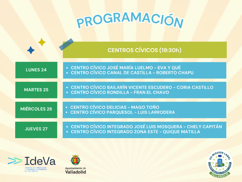 Magia, música, teatro, clown, cuentacuentos y títeres, entre otros géneros, coparán los espectáculos que se desarrollarán en los 13 Centros Cívicos, así como en los Centros Municipales (Pinar de Antequera, Puente Duero, Las Flores y La Overuela) y en los Centros...