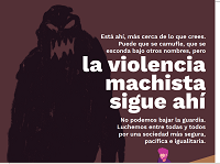 Está ahí, más cerca de lo que crees. Puede que se camufle, que se esconda bajo otros nombres, No podemos bajar la guardia. Luchemos entre todas y todos por una sociedad más segura pacífica e igualitaria".En cuanto al elaborado por el Ayuntamiento para conmemorar...