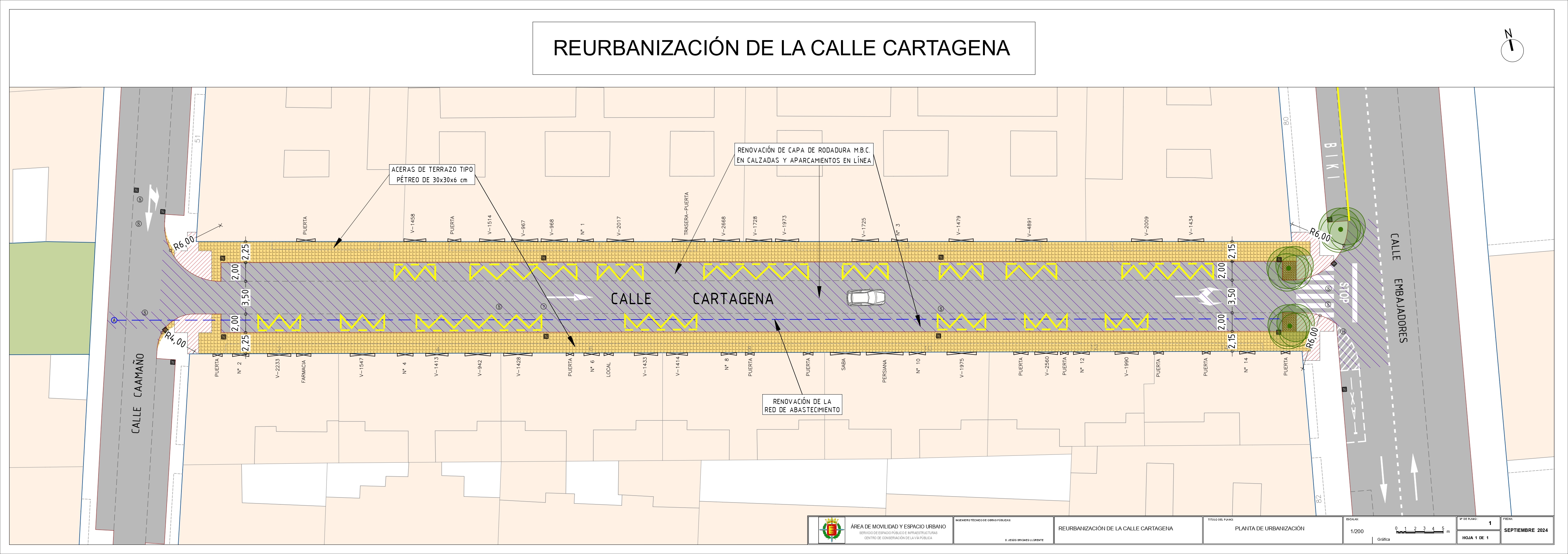 Por su parte, las obras de reurbanización de la calle Cartagena cuentan también con un plazo de ejecución de tres meses, por lo que finalizarán en la segunda quincena de enero, tras el parón navideño. El presupuesto estimado es de 217.000 euros, con cargo a los presupuestos participativos aprobados en 2023 y asignados a este Área de Tráfico y Movilidad, a través del Lote 1 del Contrato de Conservación de las Vías Públicas adjudicado a Zarzuela, S. A.