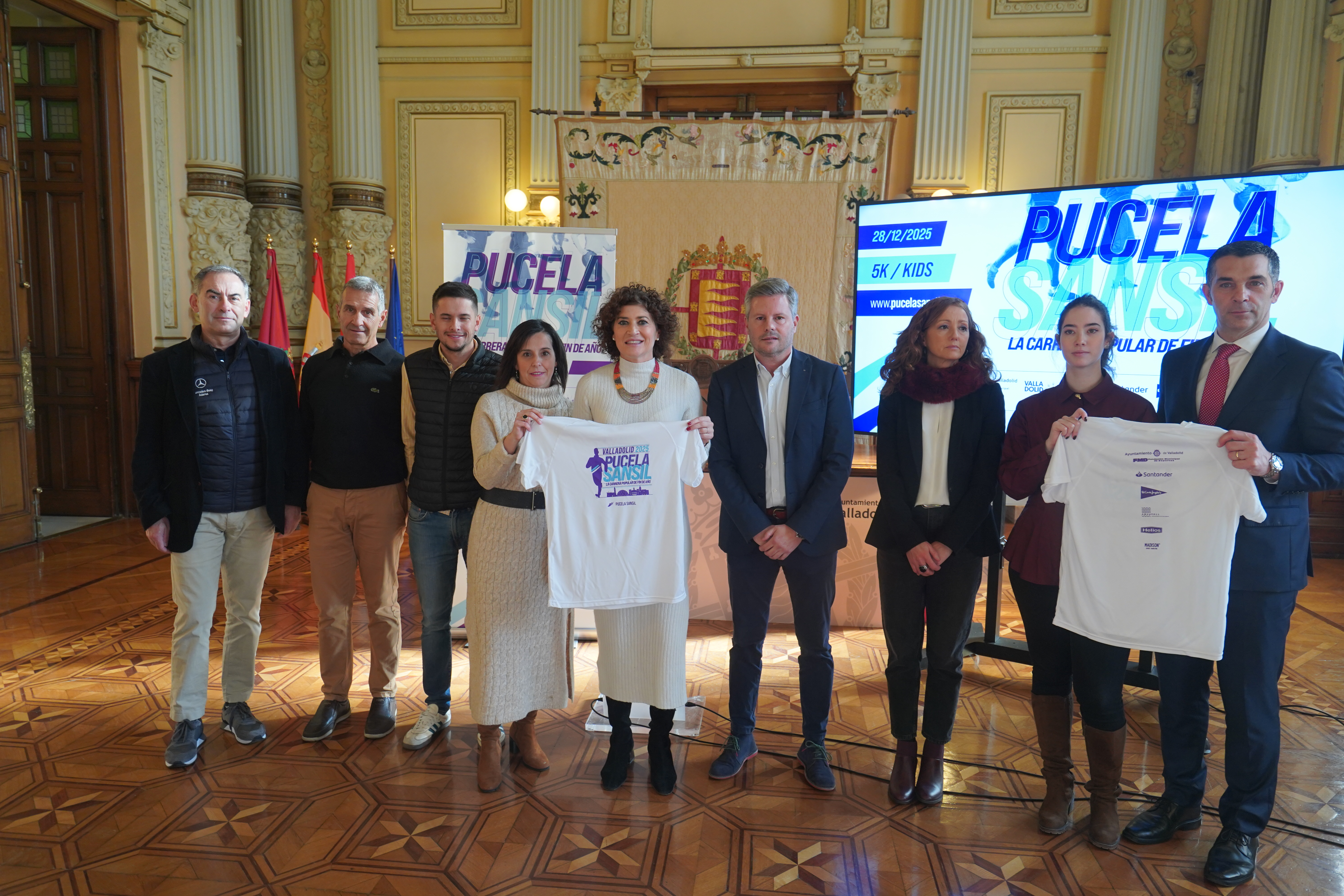 La carrera popular de fin de año ya está de vuelta. El Ayuntamiento de Valladolid ha acogido esta mañana la presentación oficial de la Pucela Sansil 2025, la carrera popular de fin de año organizada por la Fundación Municipal de Deportes (FMD), que celebrará el próximo sábado 28 de diciembre su segunda edición. El acto ha tenido lugar en el Salón de Recepciones, con la participación de Mayte Martínez, concejala de Participación Ciudadana y Deportes del Ayuntamiento de Valladolid; Juan Méndez, director de Madison Sports Marketing, patrocinadores y colaboradores del evento.