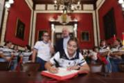 El alcalde de Valladolid, Jesús Julio Carnero, acompaña a las pregoneras por el centro de la ciudad y las invita a firmar en el Libro de Honor del Ayuntamiento
