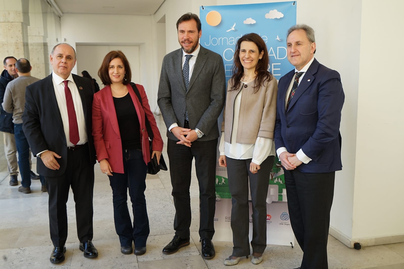 Esta Jornada sobre Calidad del Aire que organizó la Red Española de Ciudades Saludables, la Plataforma por el Aire Limpio y el Ayuntamiento de Valladolid, contó para su inauguración con la presencia del alcalde, Óscar Puente, a quien acompañaron la vocal de la Plataforma por el Aire Limpio y directora general de UNESA, Paloma Sevilla, y el secretario general de la Federación Española de Municipios y Provincias, Carlos Daniel Casares.