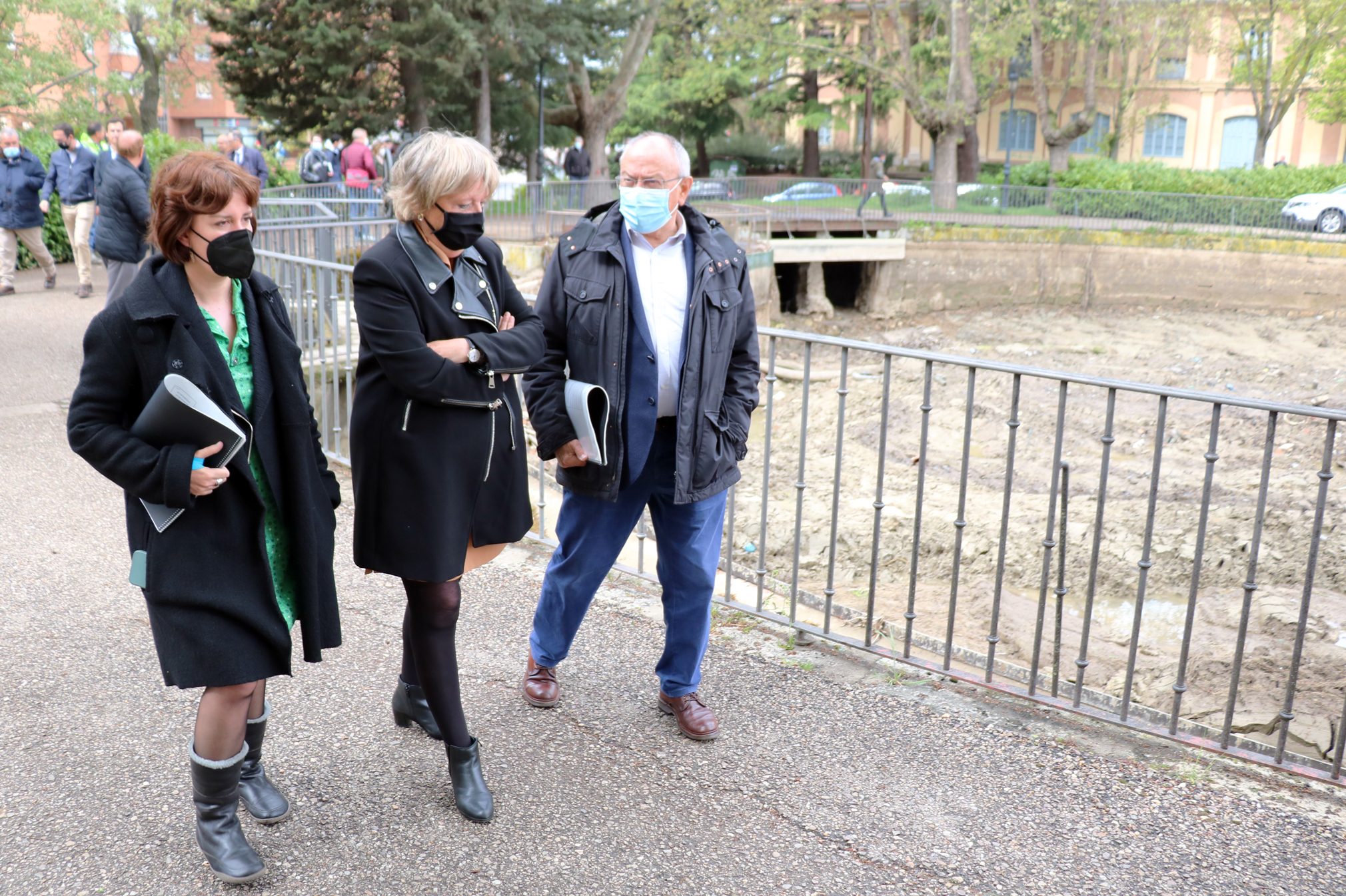 La presidenta del Consejo de Aquavall y concejala de Medio Ambiente y Desarrollo Sostenible, María Sánchez, ha asistido - invitada por la CHD- esta mañana junto con la presidenta de la Confederación Hidrográfica del Duero, Cristina Danés, a visitar las obras que la CHD realiza en la dársena del Canal de Castilla en el barrio de la Victoria de la capital vallisoletana.