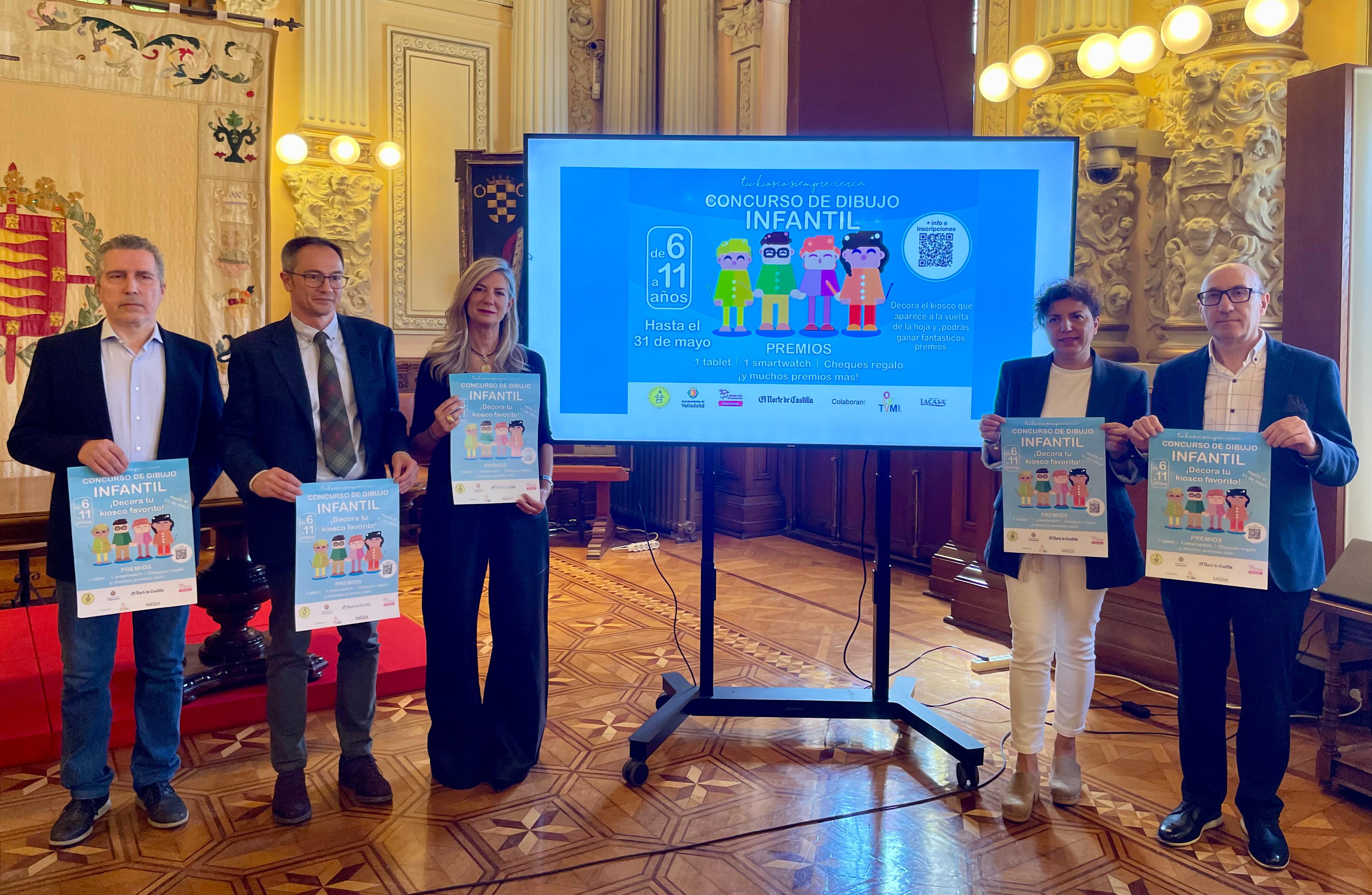 La concejala de Educación y Cultura, Irene Carvajal, y el concejal de Comercio, Mercados y Consumo, Víctor Martín, han presentado en la mañana de hoy en el Salón de Recepciones del Ayuntamiento una campaña que tiene por objeto dar visibilidad y hacer valer los kioscos de la ciudad, y que contempla como acción principal la puesta en marcha de un concurso de dibujo infantil, que se desarrollará bajo el título ‘Tu kiosco siempre cerca’. En el acto, los ediles han estado acompañados por el presidente de Asociación Vallisoletana de Vendedores de Prensa (ASVEPREVA), Juan Carlos García, y el presidente de la Federación de Comercio y Servicios de Valladolid y Provincia (FECOSVA), Jesús Herreras.