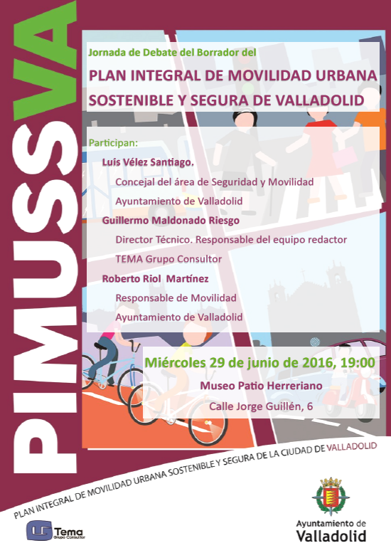 El Ayuntamiento de Valladolid organiza mañana, miércoles, 29 de junio, a las 19 horas, un debate sobre el Plan de Movilidad Urbana Segura y Sostenible de Valladolid (PIMUSSVA), que se encuentra actualmente en fase de elaboración y apertura a la participación de la ciudadanía.