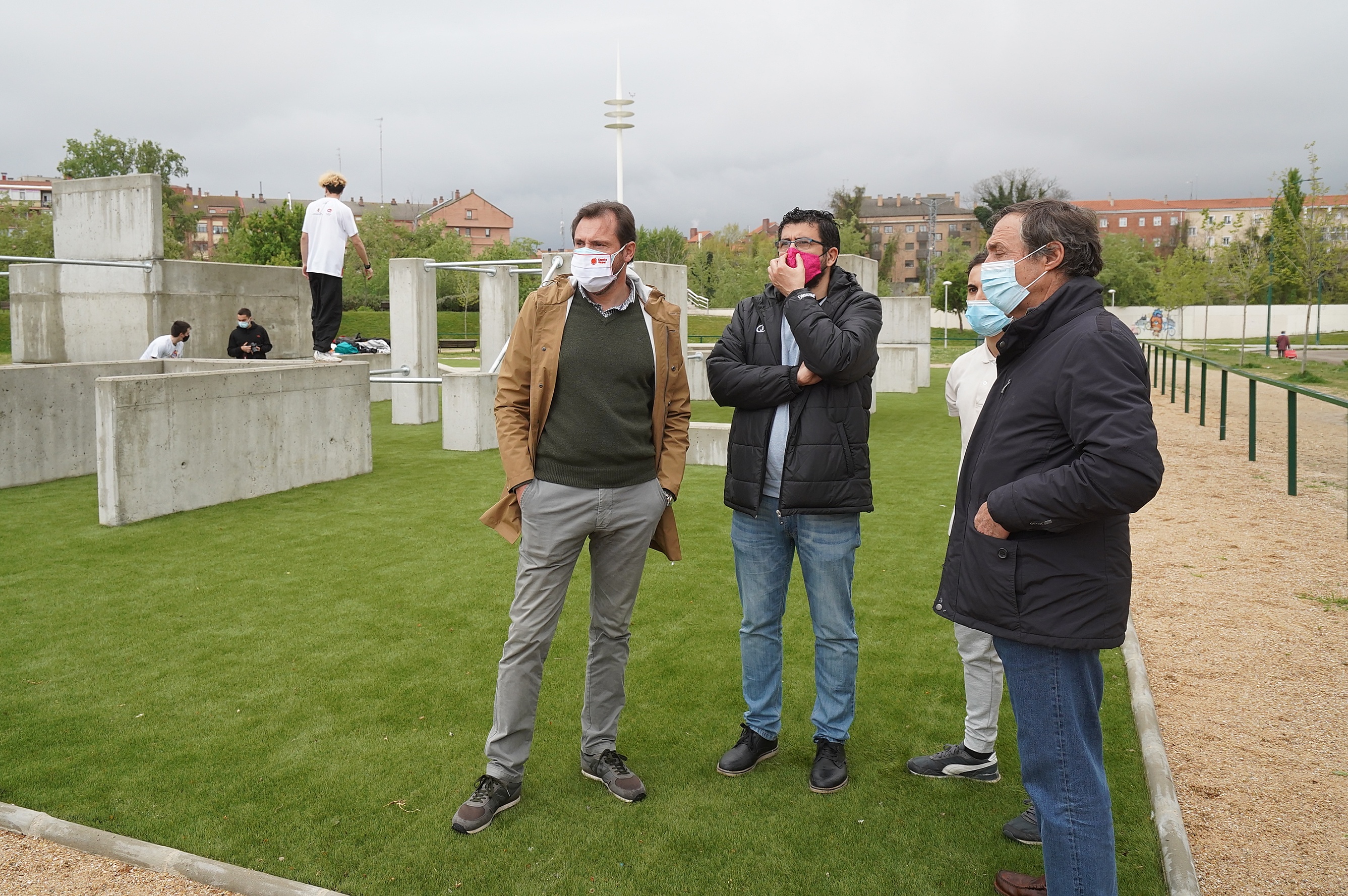 La primera pista de parkour de Valladolid ya es una realidad, según han comprobado el alcalde, Óscar Puente, y el concejal de Participación Ciudadana y Deportes, Alberto Bustos.