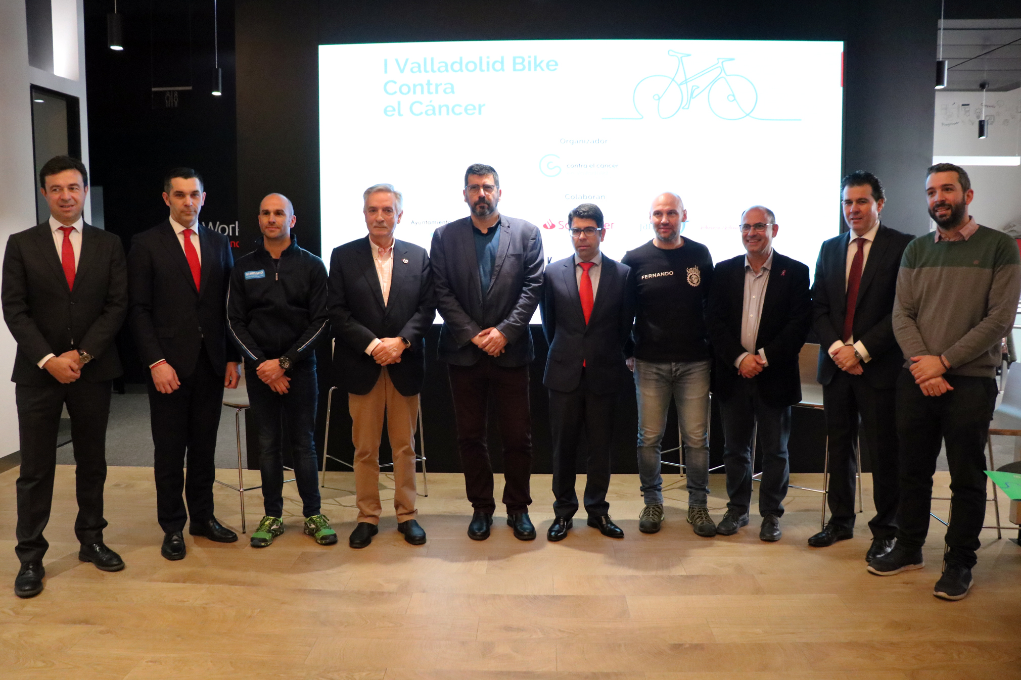 El concejal de Movilidad y Espacio Urbano, Luis Vélez, y el concejal de Participación Ciudadana y Deportes, Alberto Bustos, han presentado la "I Valladolid Bike Contra el Cáncer", una iniciativa de AECC Valladolid, con el presidente de la entidad, Artemio Domínguez, el director de Zona de Valladolid en Banco Santander, Alfonso Pilo Pintado, y el manager regional de Relaciones Institucionales de Janssen, José Andrés Santos.