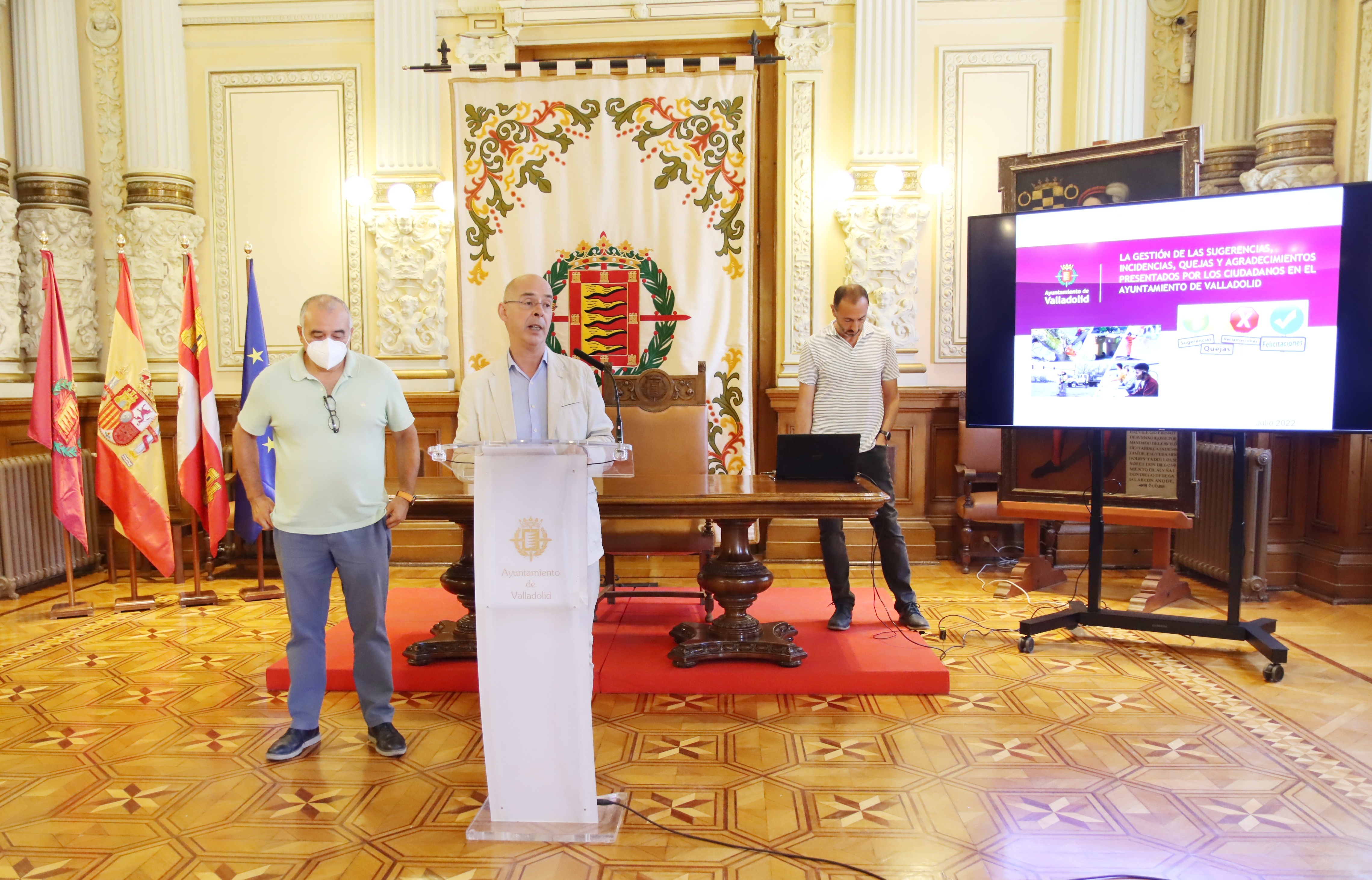 La participación en el Ayuntamiento de Valladolid ha mejorado con los mismos funcionarios y empleados públicos: se atienden todas las solicitudes presentadas por los vecinos y en menos tiempo. La Comisión Especial de Sugerencias y Reclamaciones tiene como una de sus funciones, la elaboración de las memorias de Sugerencias y Reclamaciones, por un lado, y de Transparencia, por otro. Hoy el concejal que preside esta Comisión, Martín Fernández Antolín, junto a los funcionarios responsables del Servicio de Información y Administración Electrónica, ha anticipado a los medios de comunicación los datos de un documento que se conocerá y se aprobará en el Pleno de mañana martes. Después se pondrá a disposición de todos los vecinos de Valladolid en el Portal de Transparencia Municipal