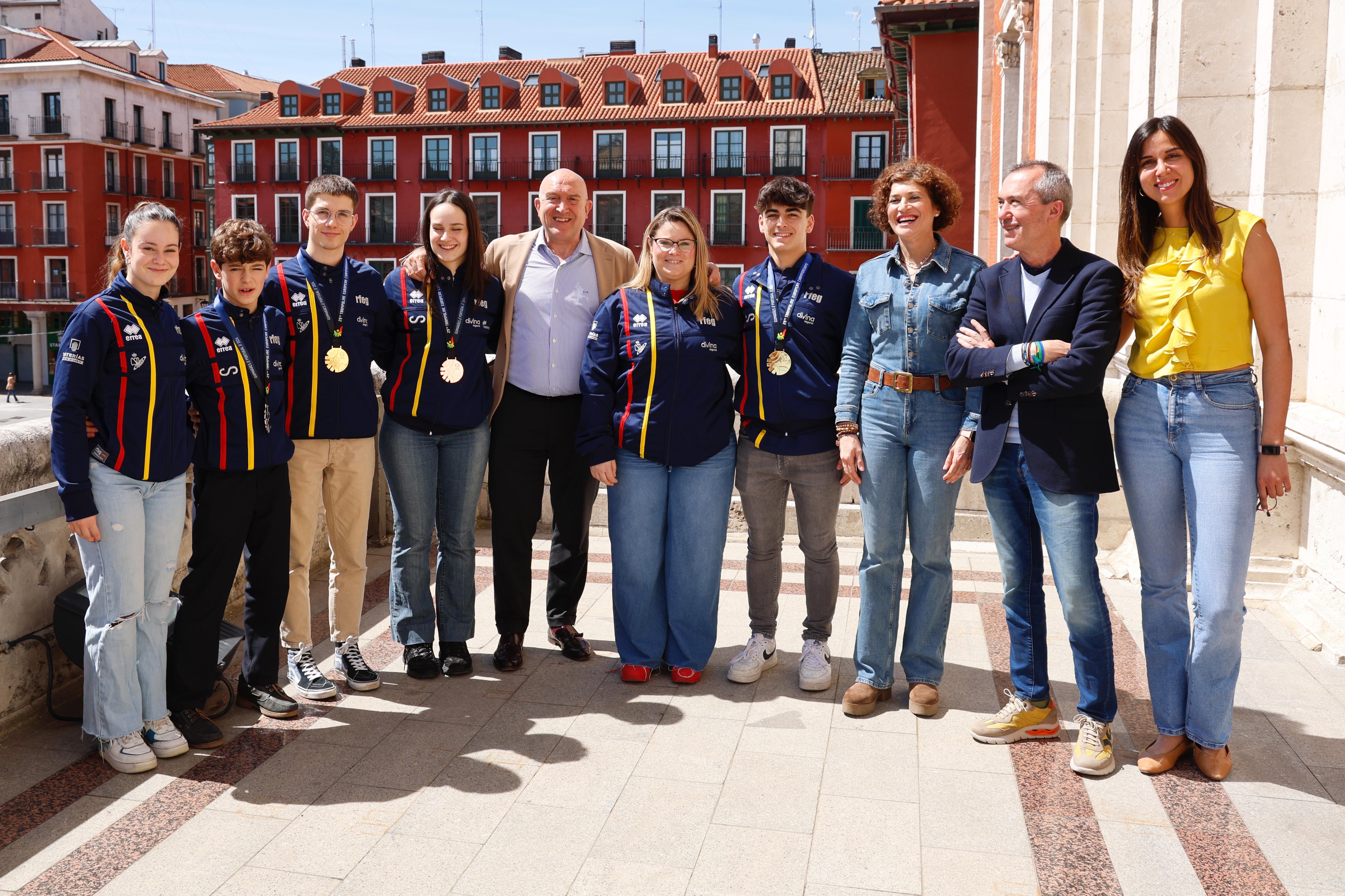 El alcalde de Valladolid, Jesús Julio Carnero, ha recibido hoy en el Ayuntamiento junto a la concejala de Participación Ciudadana y Deportes, Mayte Martínez, a los representantes del Club Deportivo Gimnasia Acrobática Valladolid a quienes ha felicitado por sus recientes éxitos en el Campeonato de Europa de Trampolín, que se ha celebrado entre los días 3 y 7 de abril en la localidad portuguesa de Guimarães.