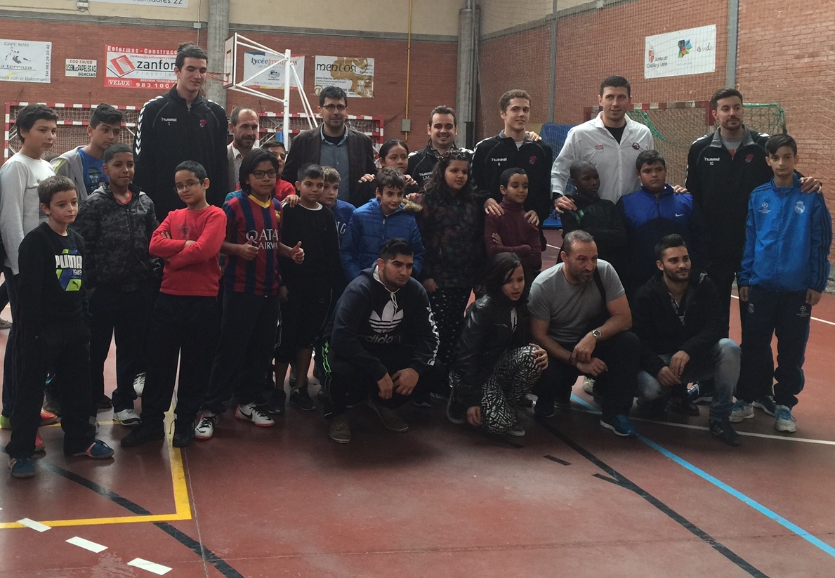 Los alumnos del Taller Intercultural del centro educativo de Pajarillos Cristóbal Colón, en el que está escolarizado un 97% de alumnos procedentes de minorías étnicas, disfrutaron este jueves de la visita del Brico Depôt CB Ciudad de Valladolid, dentro del programa "El deporte VA al cole", puesto en marcha por la Asociación de la Prensa Deportiva de Valladolid en colaboración con la Fundación Municipal de Deportes.