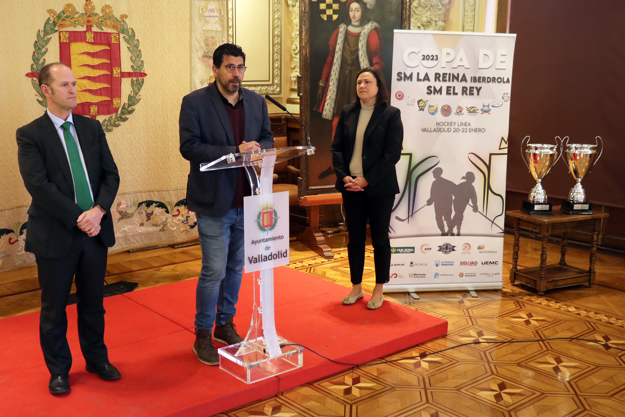 El concejal de Participación Ciudadana y Deportes, Alberto Bustos, ha presentado la Copa de la Reina Iberdrola y la Copa del Rey de Hockey Línea que se diputarán del 20 al 22 de enero en Valladolid en el Polideportivo Canterac acompañado por la presidenta de la Federación de Patinaje de Castilla y León y miembro de la junta directiva de la RFEP, María Isabel Rodríguez Tejedor, y delegado institucional de Iberdrola en Castilla y León, Miguel Calvo.