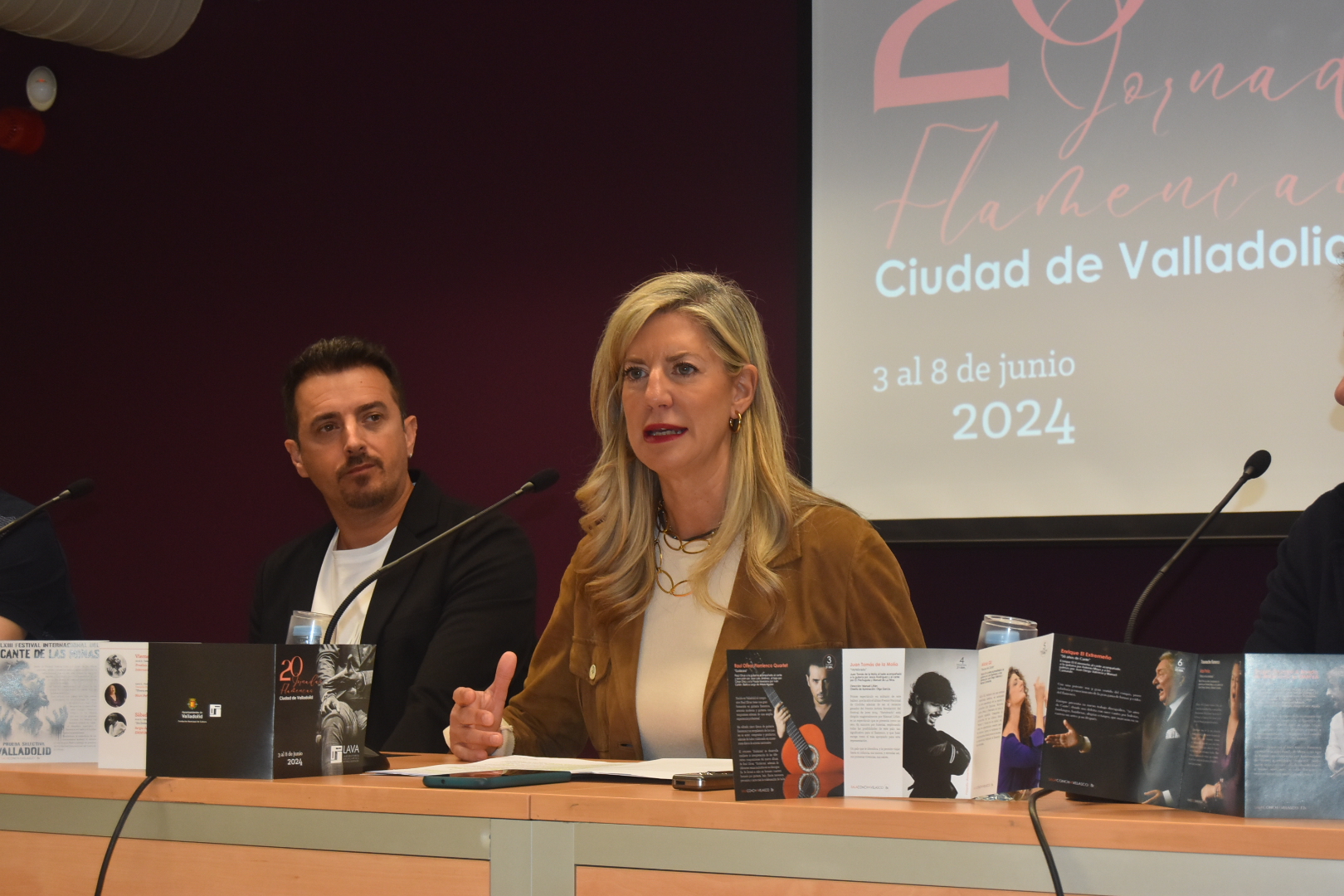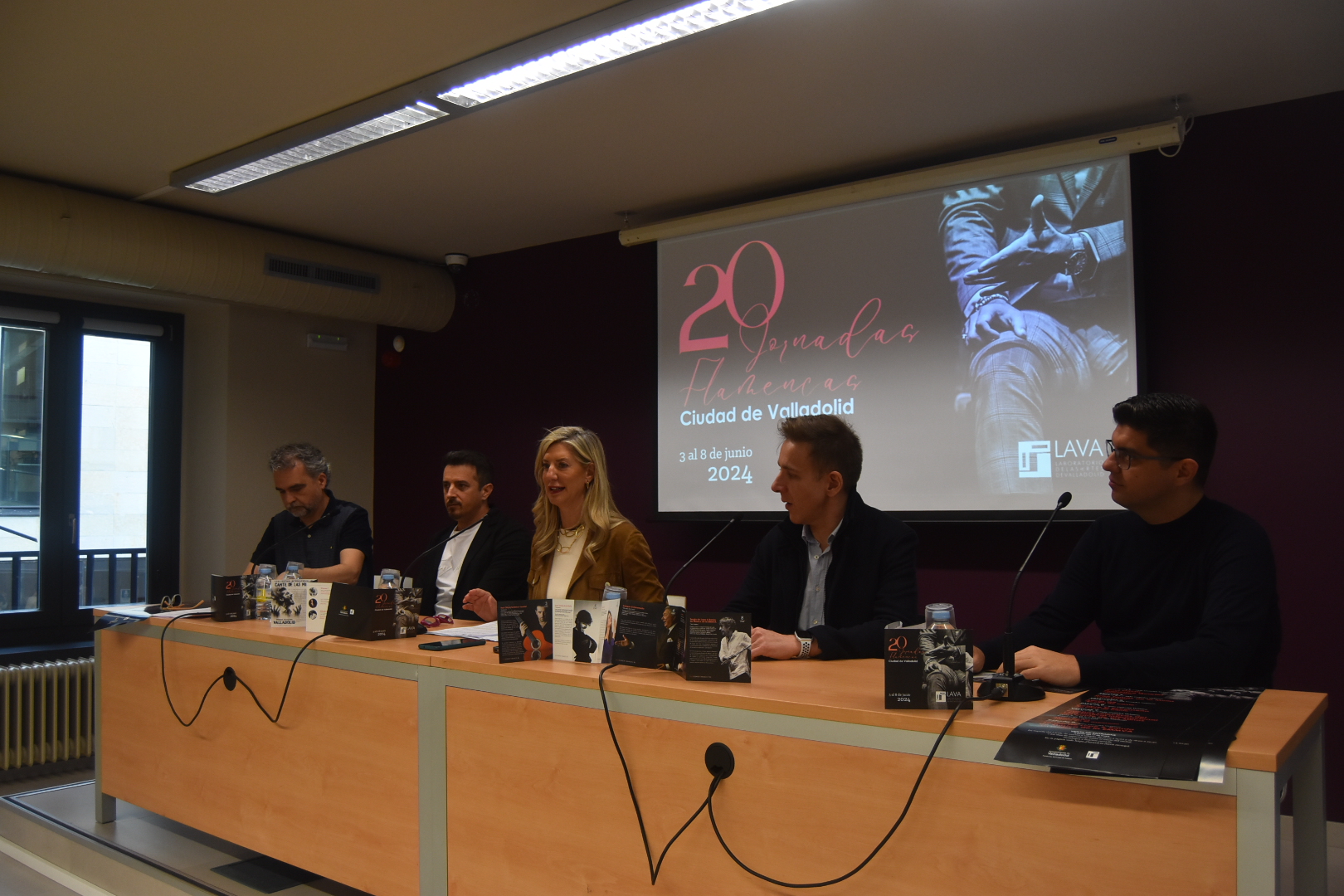 La concejala de Educación y Cultura, Irene Carvajal, ha presentado esta mañana en la Sala Cossío de la Casa Revilla las 20 Jornadas Flamencas ‘Ciudad de Valladolid’, que se celebrarán entre los días 3 y 8 de junio en el Laboratorio de las Artes de Valladolid (LAVA)-Fundación Municipal de Cultura (FMC). Ha estado acompañada por el guitarrista flamenco vallisoletano Raúl Olivar; el director de la Escuela Municipal de Música de Valladolid, Francisco Javier Alonso; el director de la Banda de Música Municipal, Ángel Páez, y Juan Herrero, el jefe de programas de FMC.