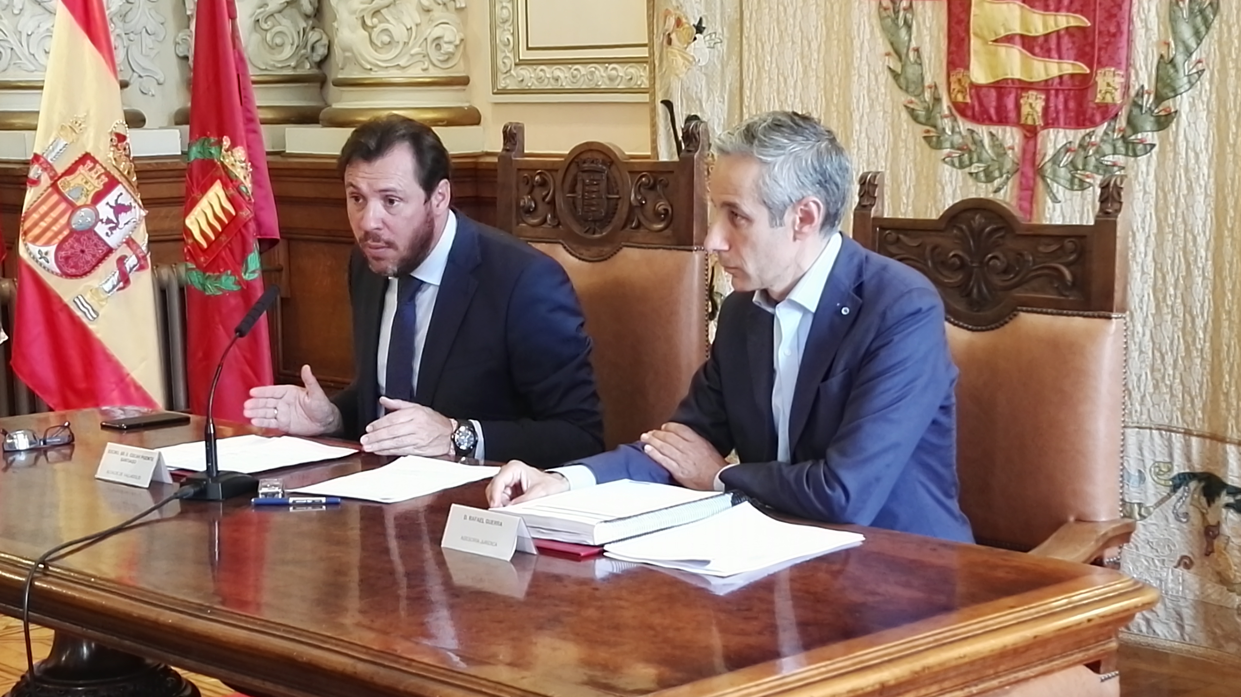 El alcalde de Valladolid, Oscar Puente, acompañado del director de la Asesoría Jurídica Municipal, Rafael Guerra, dieron a conocer este martes el contenido del auto del Juzgado de Instrucción número 4 de Valladolid, notificado este mismo 30 de mayo, que cierra la instrucción del llamado "Caso Samaniego", abierta a raíz de la denuncia del entonces concejal del Grupo Socialista, el propio Puente, sobre la "trama" creada por el exjefe de Mantenimiento del Ayuntamiento, Luis Alberto Samaniego, que, según asume el propio auto, podría haber provocado un perjuicio a las arcas públicas de más de 2,4 millones de euros.