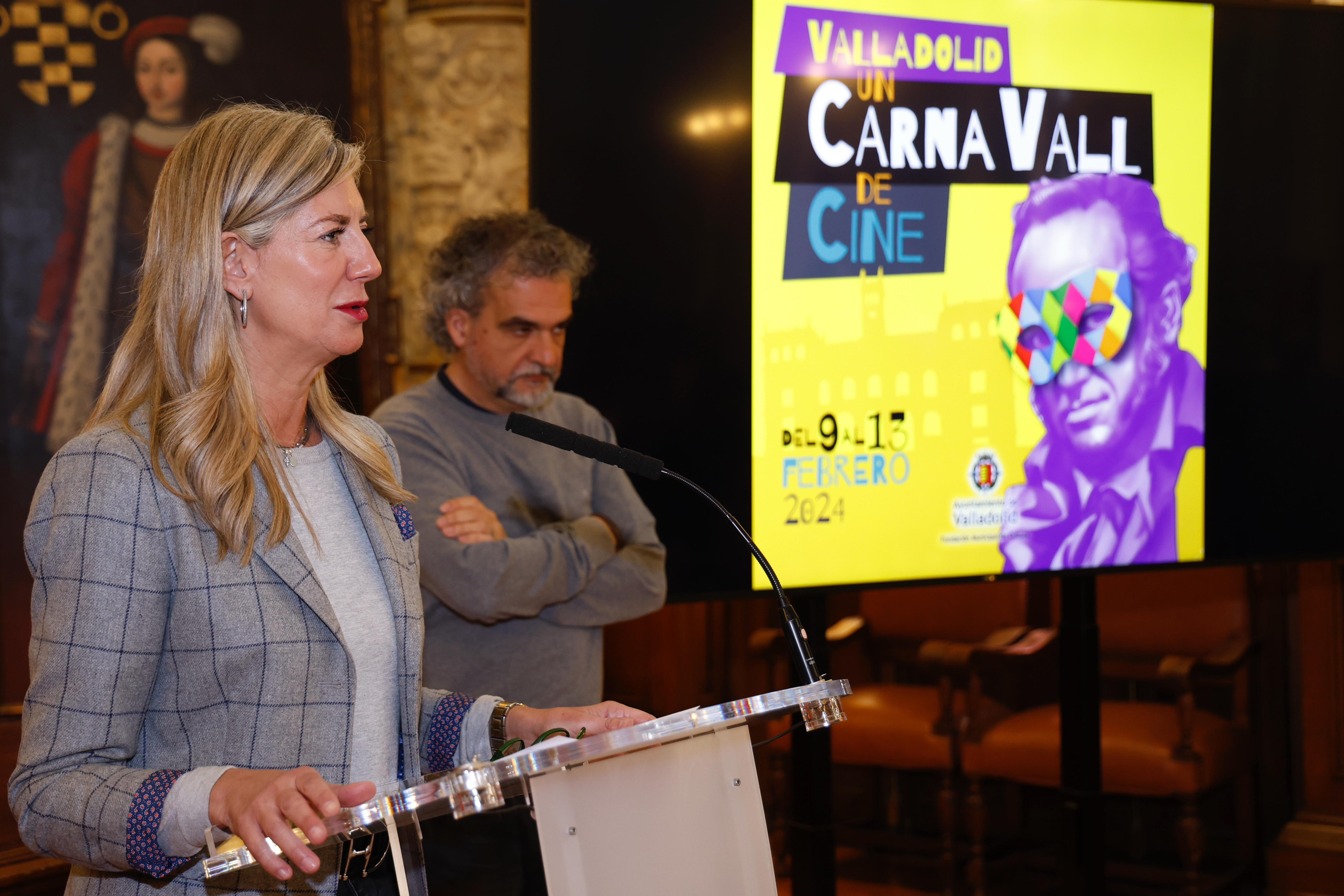 La concejala de Educación y Cultura, Irene Carvajal, acompañada por el gerente del Centro Comercial Vallsur, Pablo Pérez, ha presentado esta mañana el programa que la Fundación Municipal de Cultura (FMC) del Ayuntamiento de Valladolid ha diseñado para celebrar el ‘Carnaval 2024’. Más de 20 propuestas, entre las que se encuentran actividades para familias, animación en las calles, bailes y concursos de disfraces, que podrán disfrutarse en el centro y en los barrios de la ciudad del 9 al 13 de febrero.