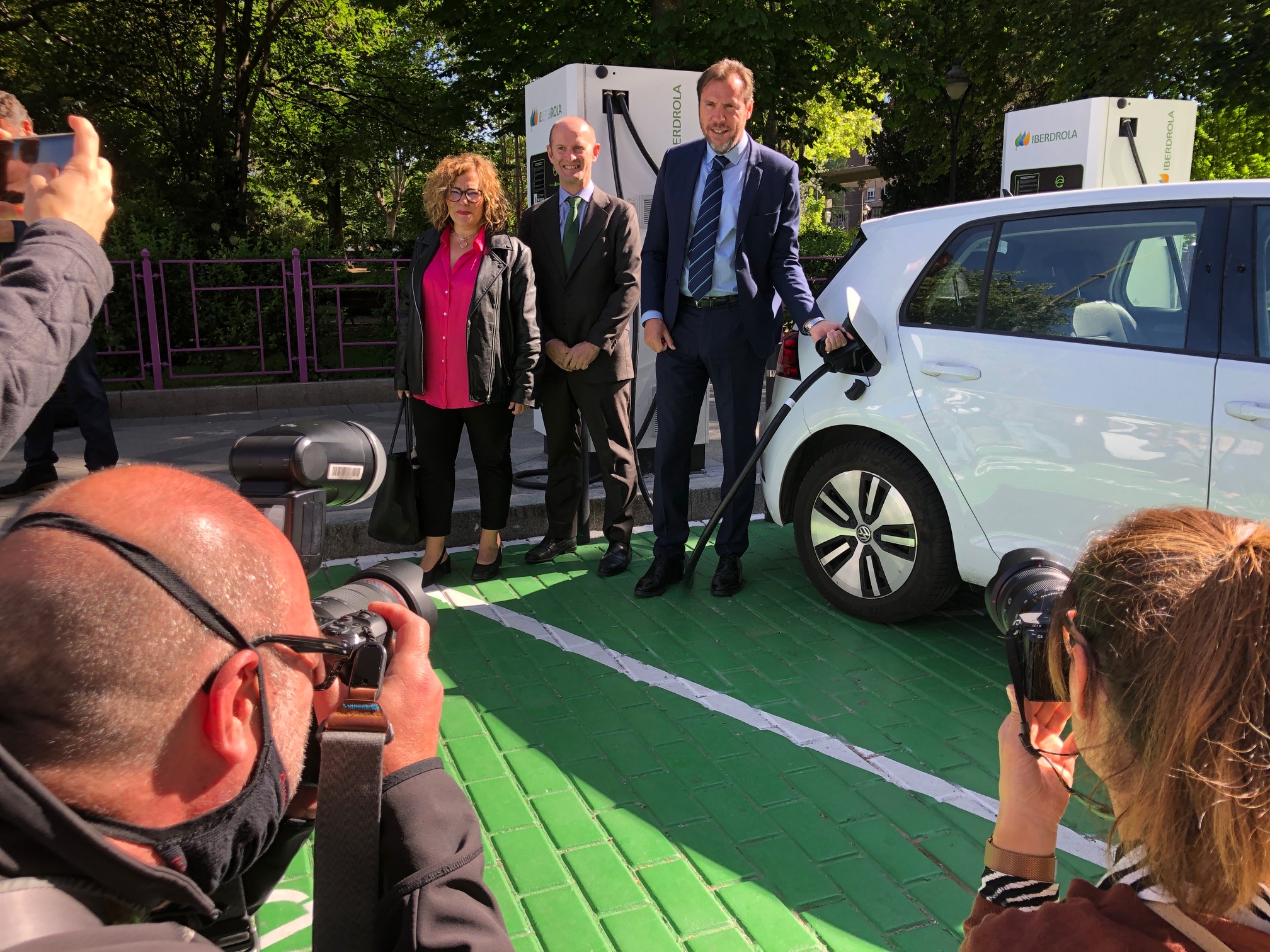 Al acto de presentación han acudido el alcalde de Valladolid, Óscar Puente, la concejala de Innovación, Desarrollo Económico, Empleo y Comercio, Charo Chávez y el delegado de Iberdrola en Castilla y León, Miguel Calvo, que han explicado el funcionamiento de la instalación y han presentado la red de recarga de vehículos eléctricos desplegada en la capital vallisoletana.
