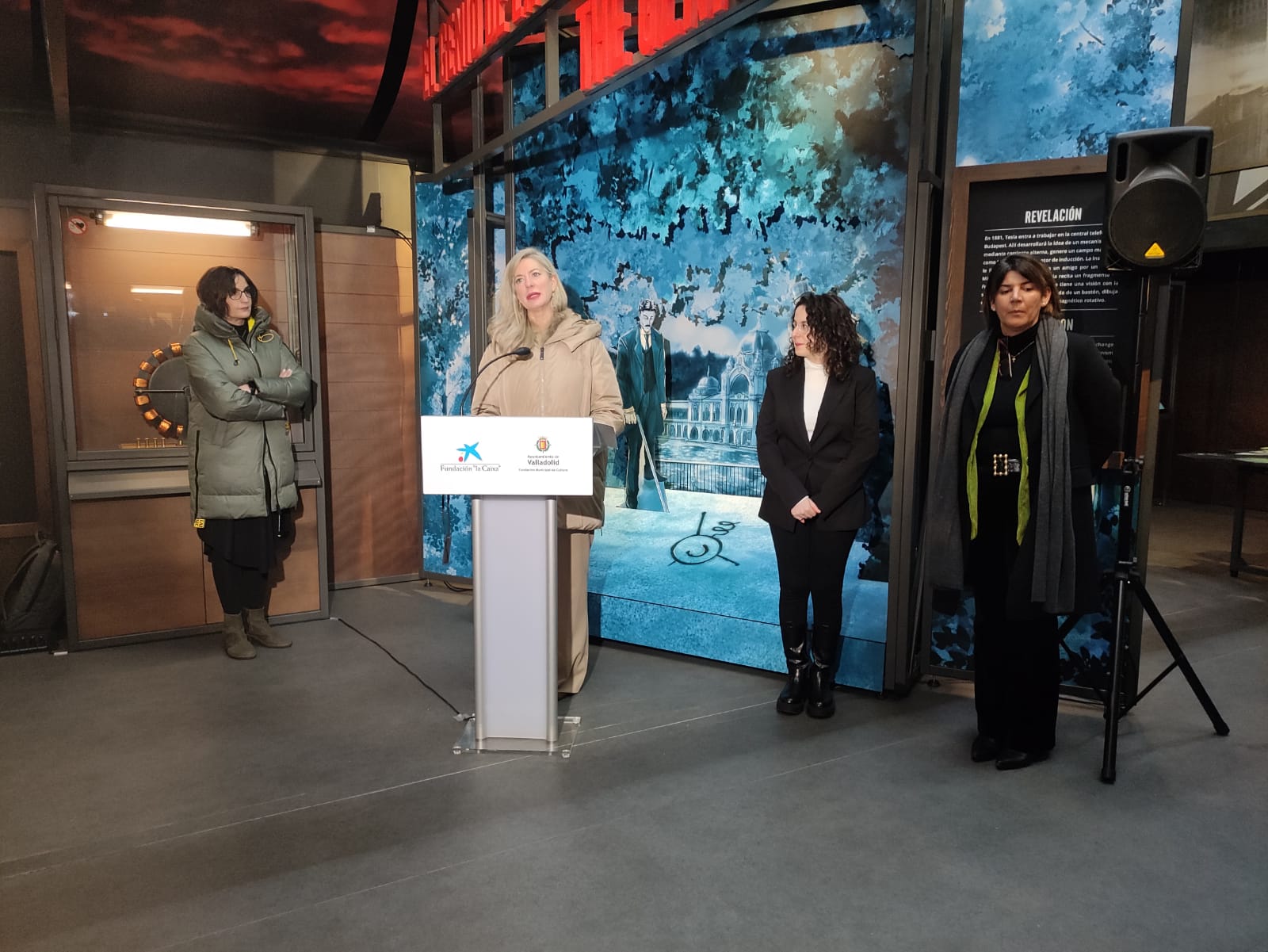 La concejala de Educación y Cultura, Irene Carvajal; la directora de Área de Negocio de CaixaBank en Valladolid, Sonsoles Moreno; la delegada de la Fundación "la Caixa" en Castilla y León, Rosana Cano, y la asesora de la exposición, Daniela Hidalgo, han presentado hoy en el Paseo del Campo Grande de Valladolid la exposición ‘Nikola Tesla. El genio de la electricidad moderna’, muestra itinerante que recorre la vida y la obra del ingeniero serbio, una figura clave en la historia de la ciencia gracias al desarrollo de inventos que marcaron el siglo XX. Al acto ha asistido el concejal de Tráfico y Movilidad, Alberto Gutiérrez Alberca.