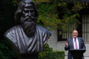 El alcalde de Valladolid, Jesús Julio Carnero, ha inaugurado hoy en el Campo Grande, junto al embajador de la India, Dinesh K. Patnaik, el director de Casa de la India, Guillermo Rodríguez, y el rector de la UVA, Antonio Largo, una escultura del poeta bengalí Rabindranath Tagore (1861-1941), el primer Premio Nobel de Literatura no europeo, que compartirá espacio con otros ilustres escritores de las letras vallisoletanas y españolas. La figura ha sido donada a la ciudad de Valladolid por el ICCR (Consejo Indio de Relaciones Culturales) del Ministerio de Asuntos Exteriores del Gobierno de la India.