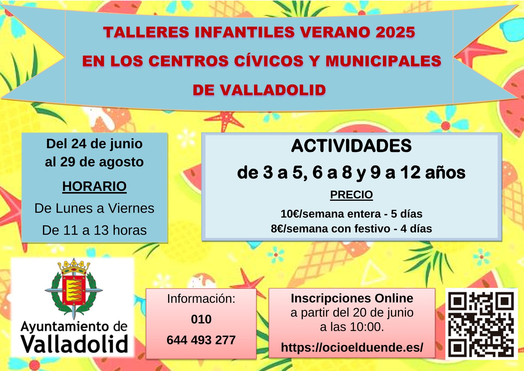 El Ayuntamiento de Valladolid, fiel a su compromiso con la conciliación familiar y el bienestar de la infancia, ha lanzado una nueva edición de los Talleres Infantiles de Verano 2025, que se desarrollarán desde hoy 24 de junio al 29 de agosto, en los centros cívicos y municipales de la ciudad.