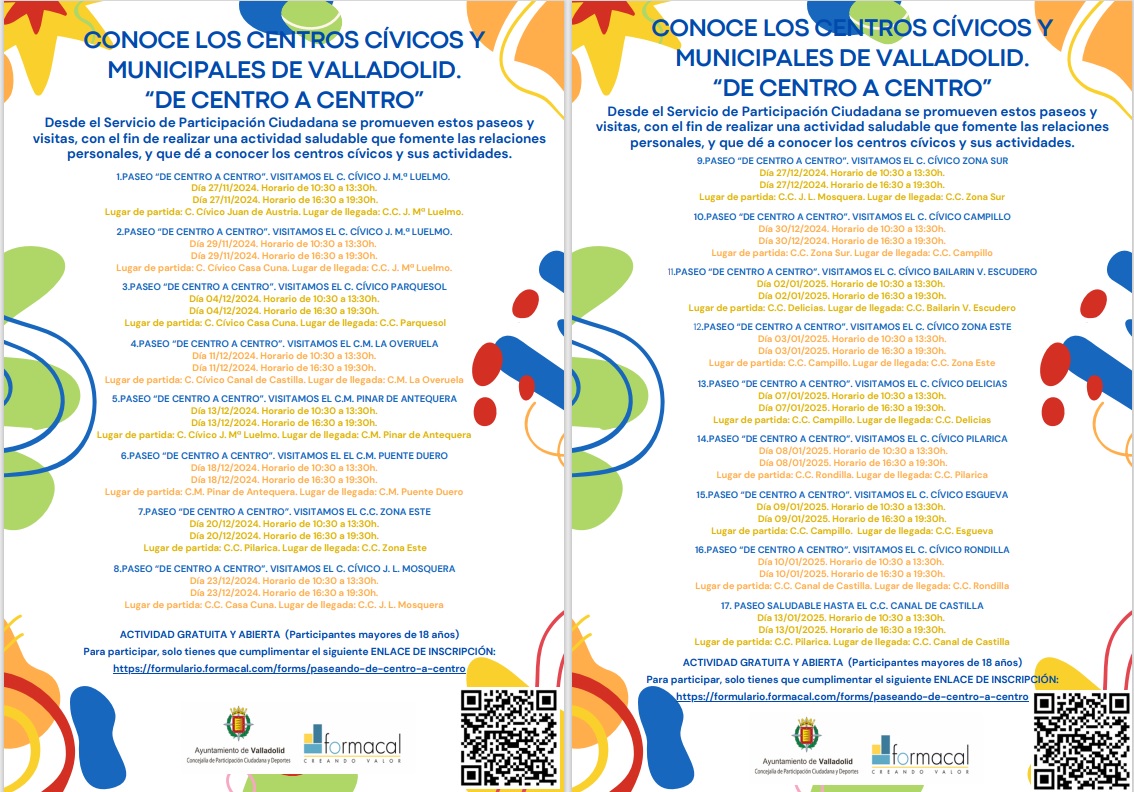 Una actividad saludable que fomenta las relaciones personales, mediante rutas urbanas entre los centros cívicos de nuestra ciudad, conociendo la oferta de actividades, que estos centros nos ofrecen.