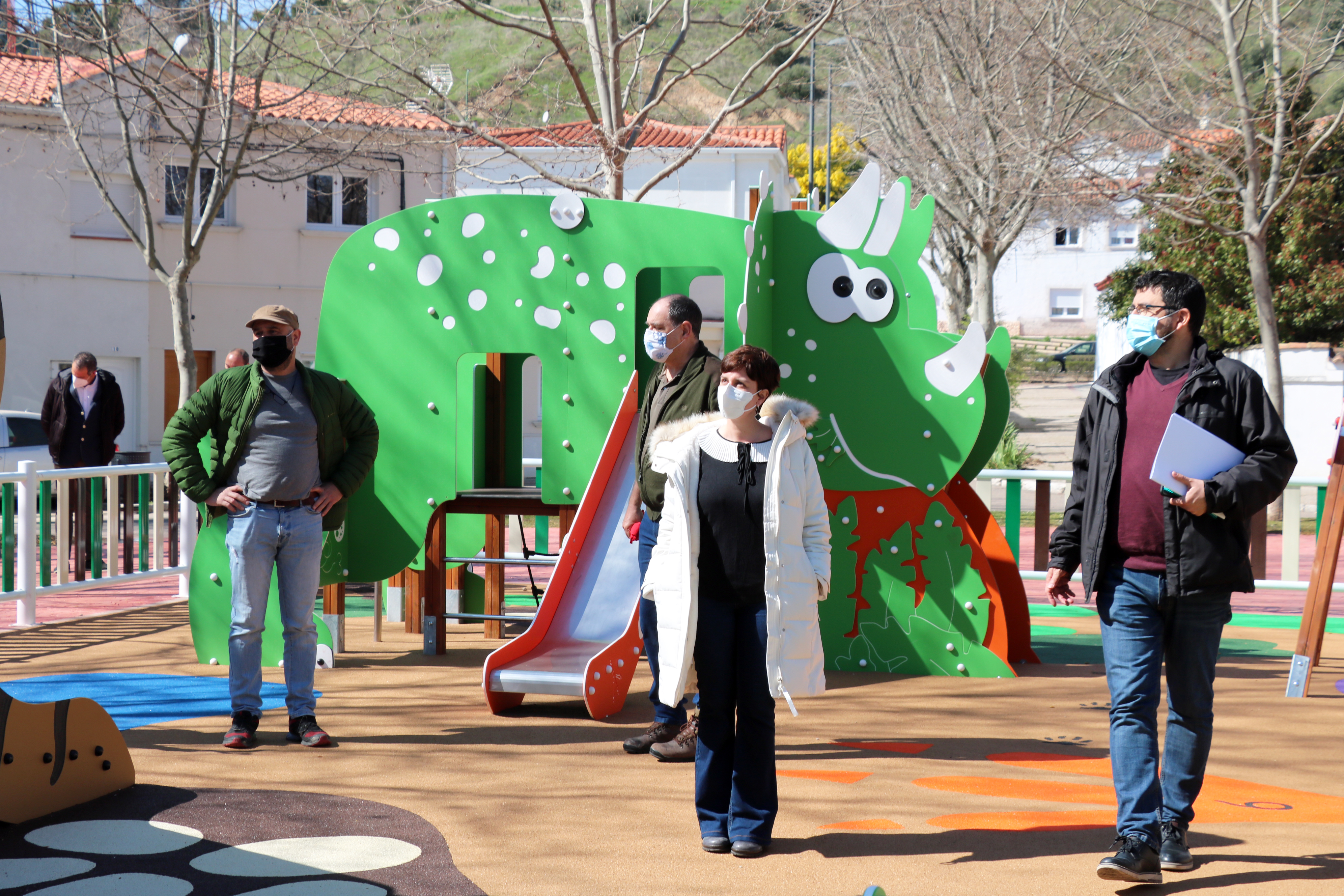 Las obras, que se han ejecutado en un plazo de tres meses, se han centrado en la renovación del pavimento existente y en la sustitución de los juegos infantiles. La zona reservada para los más pequeños incorpora un conjunto modular con tobogán, balancín, columpios y otros elementos de diversión. El parque infantil está plagado de imágenes de dinosaurios.