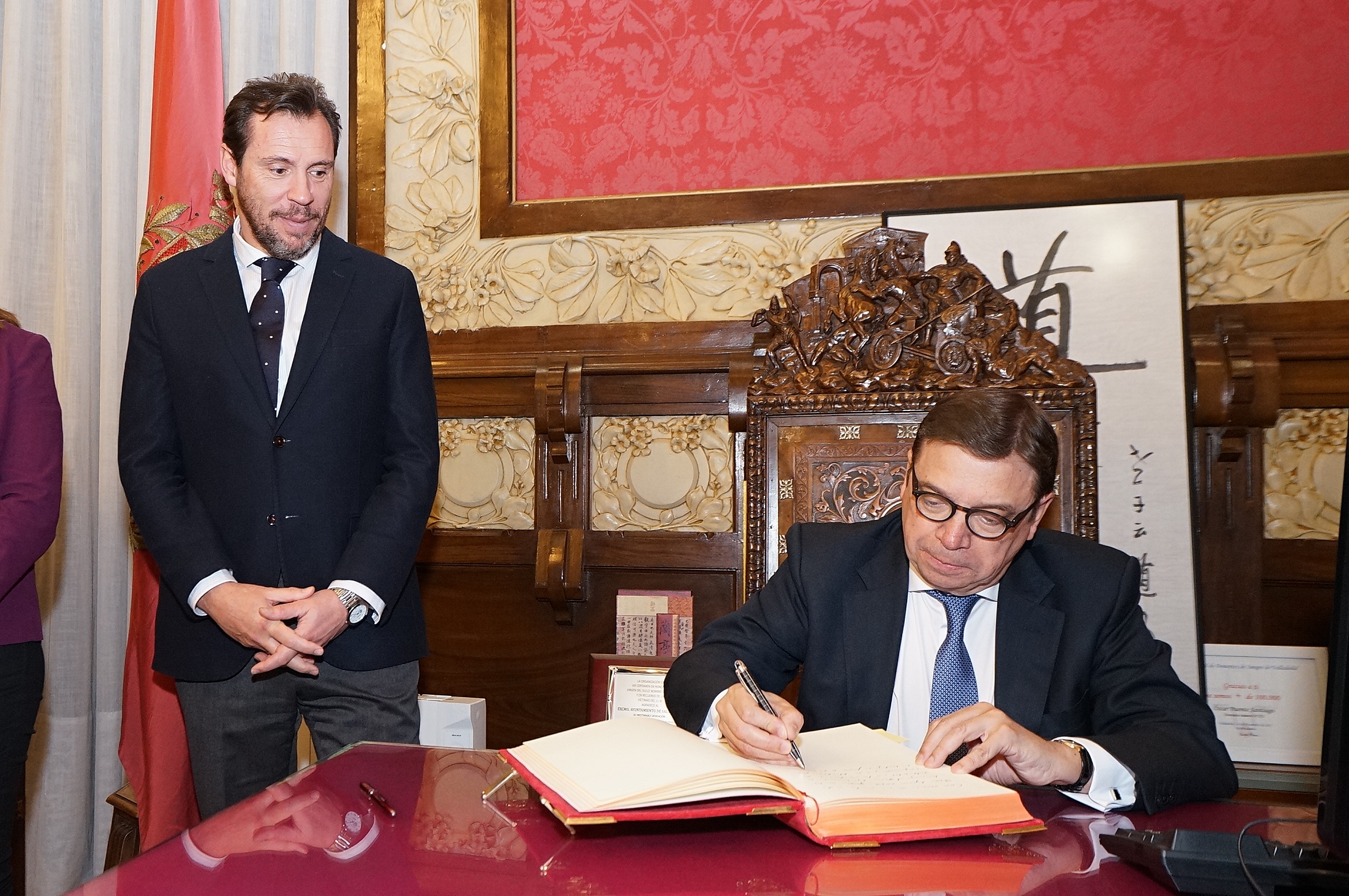 Después del recorrido por los stands de Agraria, ambos se trasladaron hasta el consistorio vallisoletano donde el Ministro firmó en el Libro de Honor,y mantuvo una una reunión.