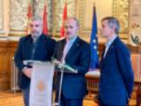 El concejal de Salud Pública y Seguridad Ciudadana, Alberto Cuadrado, y el presidente del Colegio Oficial de Veterinarios de Valladolid, Rufino Álamo, acompañados por el director del servicio de Salud Pública, Dionisio Villagrá, han presentado hoy en el Salón de Recepciones de Ayuntamiento una campaña, bajo el lema ‘¡Todos con microchip!’.