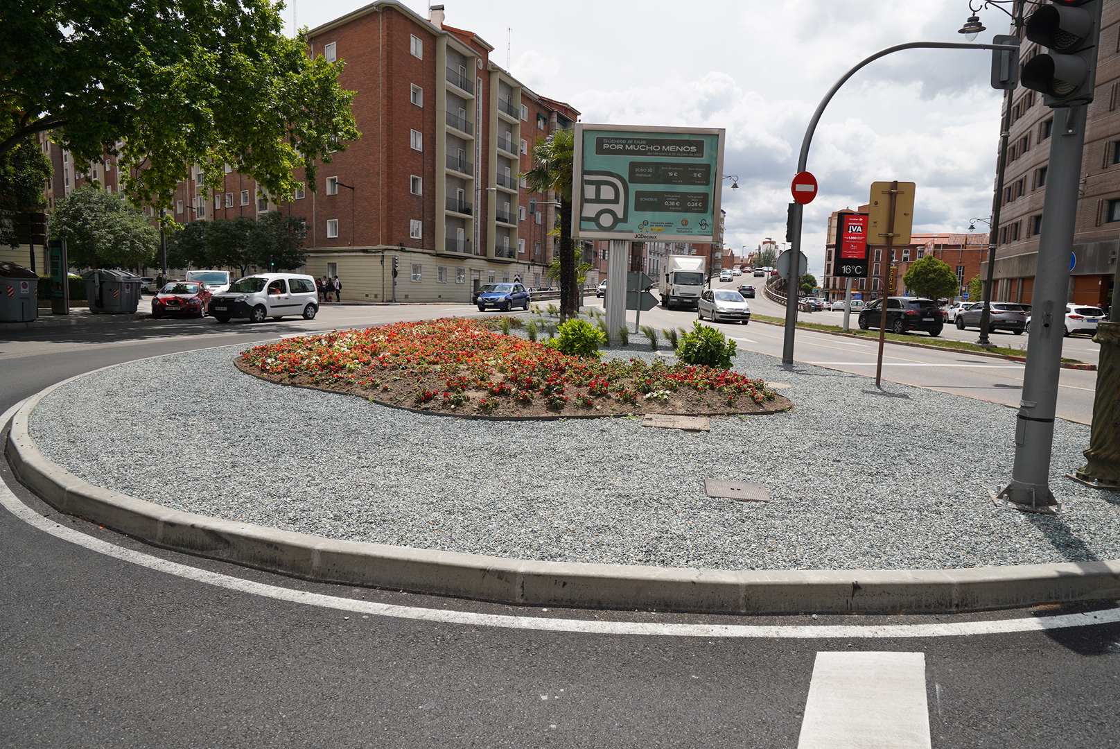 La jardinería y redes de riego de las dos isletas mayores de la intersección han sido completamente renovadas, con una combinación de plantaciones y áridos ornamentales en la que destacan las cuatro nuevas palmeras, además de macizos florales, etc. En el lateral reurbanizado de Arco de Ladrillo se han mantenido todos los árboles que se encontraban en buen estado.