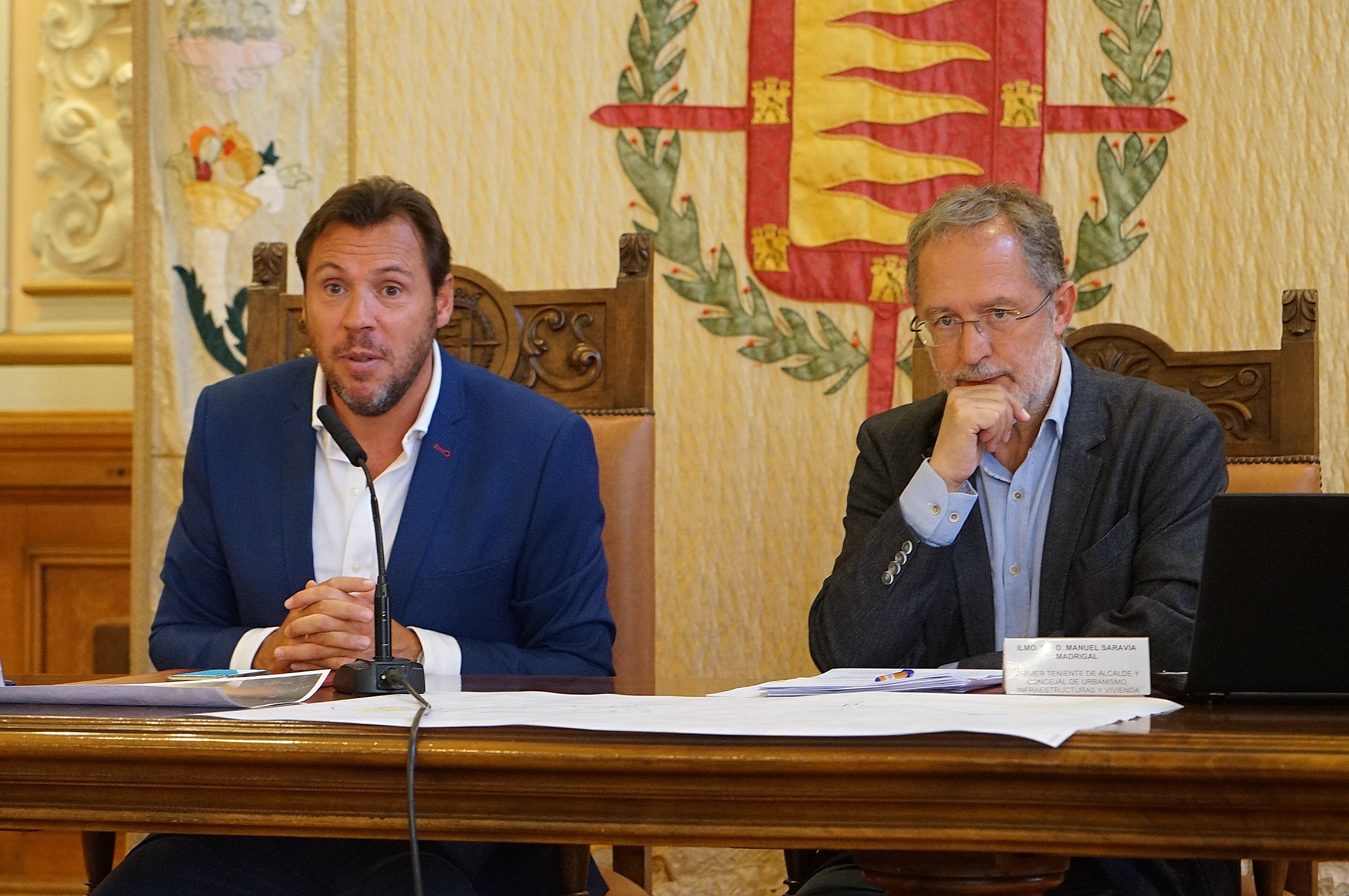 El alcalde, Óscar Puente, y el concejal de Urbanismo, Manuel Saravia, han explicado, esta mañana en rueda de prensa, las características del convenio por el que mediante el incremento de la edificabilidad de la parcela de la antigua Electra, en el Paseo de Isabel La Católica, se cederá al Ayuntamiento la parcela del colegio El Salvador y, de esta forma, se incrementa en 7 millones de euros la financiación de la regeneración urbana de Aramburu-Las Viudas, en Delicias.