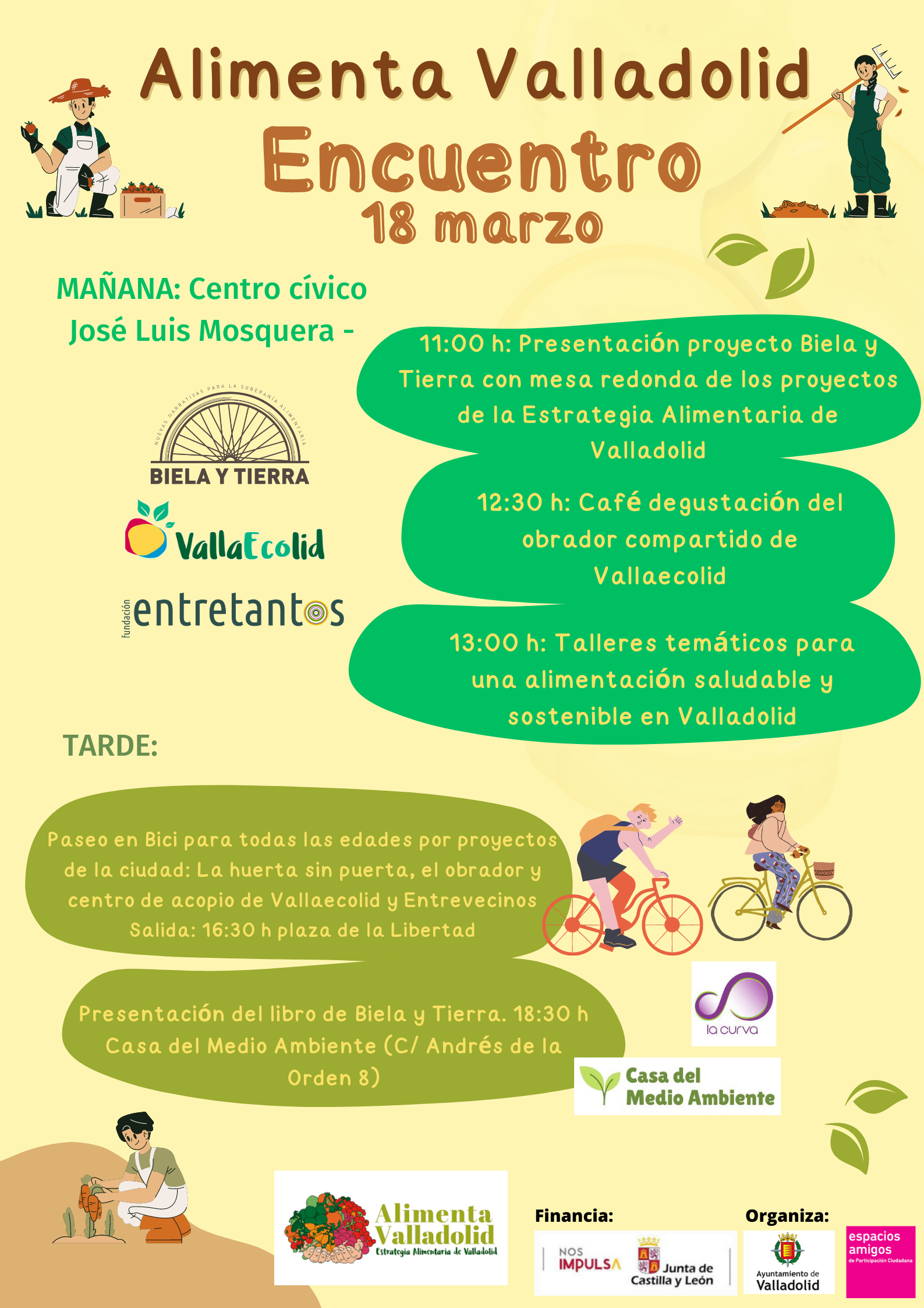 El próximo sábado 18 de marzo, a partir de las 11:00h de la mañana tendrá lugar, en el Centro Cívico José Luis Mosquera, el Encuentro Anual promovido por la Estrategia Alimentaria impulsada por el Ayuntamiento de Valladolid a través de la Concejalía de Medio Ambiente y Desarrollo Sostenible en colaboración con la Universidad de Valladolid y la Fundación Entretantos.